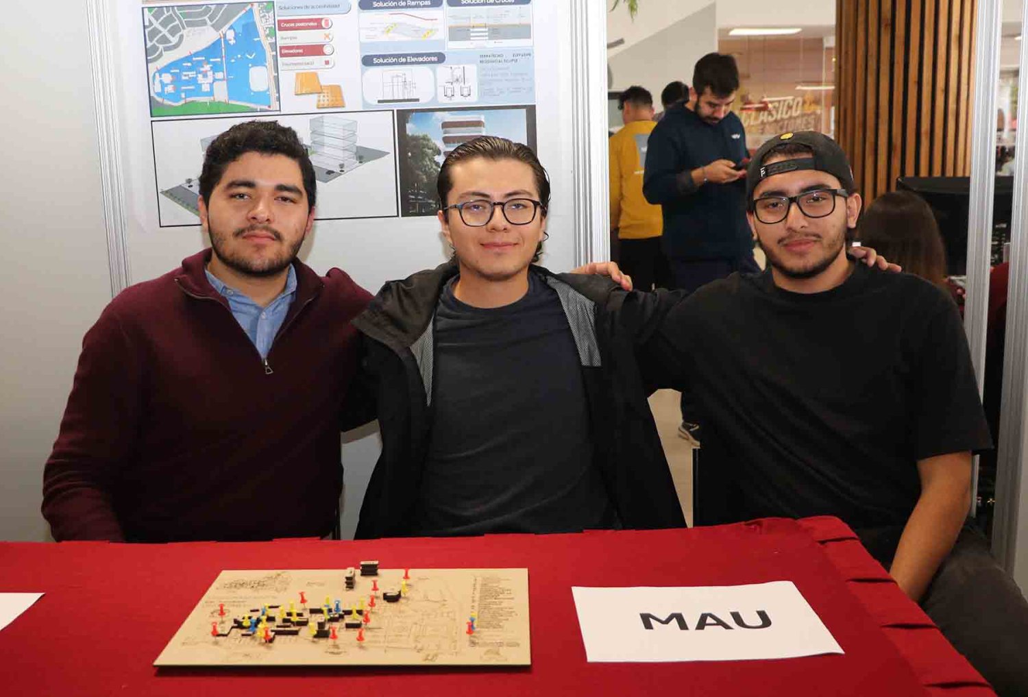 Tras el panel, se realizó la feria de proyectos “Tu profesión en la inclusión de personas con discapacidad”, en la que estudiantes de Ing. en Electrónica Biomédica, Lic. en Ciencias de la Nutrición, Lic. en Arquitectura, Lic. en Terapia Física y Médico Cirujano presentaron propuestas de inclusión en sus respectivos campos.