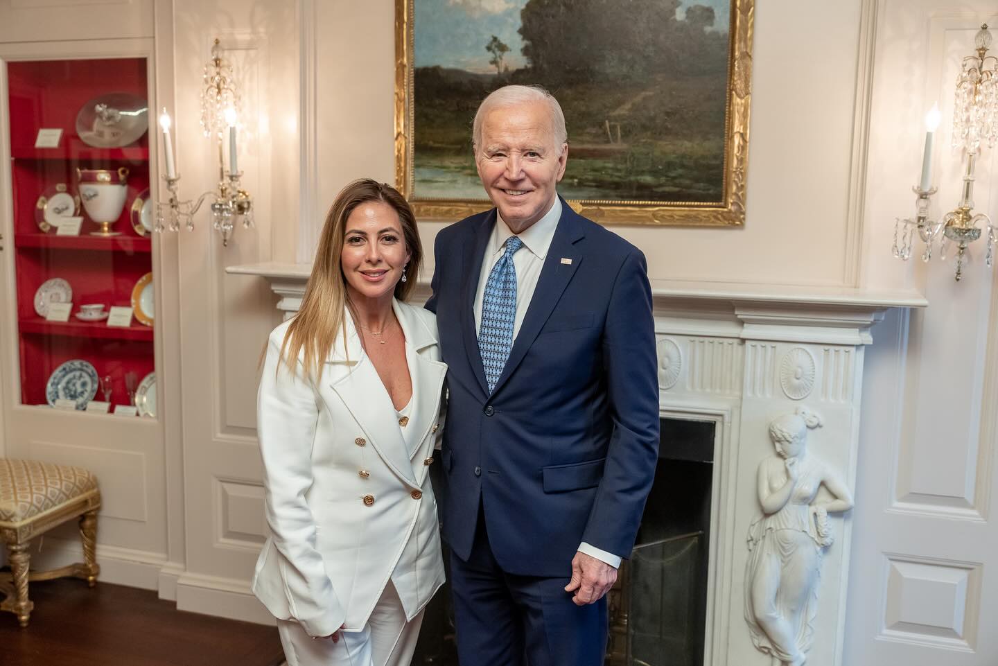 Stephanie Himonidis durante una entrevista con el entonces presidente de Estados Unidos, Joe Biden.