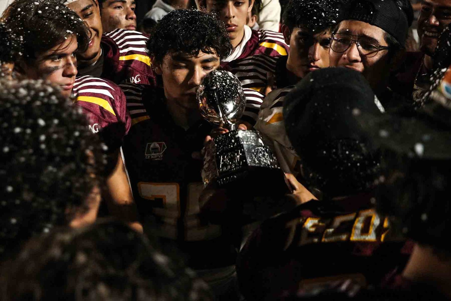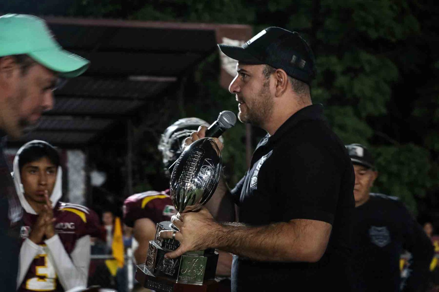 El trofeo de campeón lo recibió el Head Coach del programa de futbol americano de los Tecos, Ing. Roberto Salas, quien después de decir unas palabras lo pasó a Misael Salas, Head Coach de los juveniles, quien en su época de jugador defendió los colores de Tecos y fue seleccionado nacional.