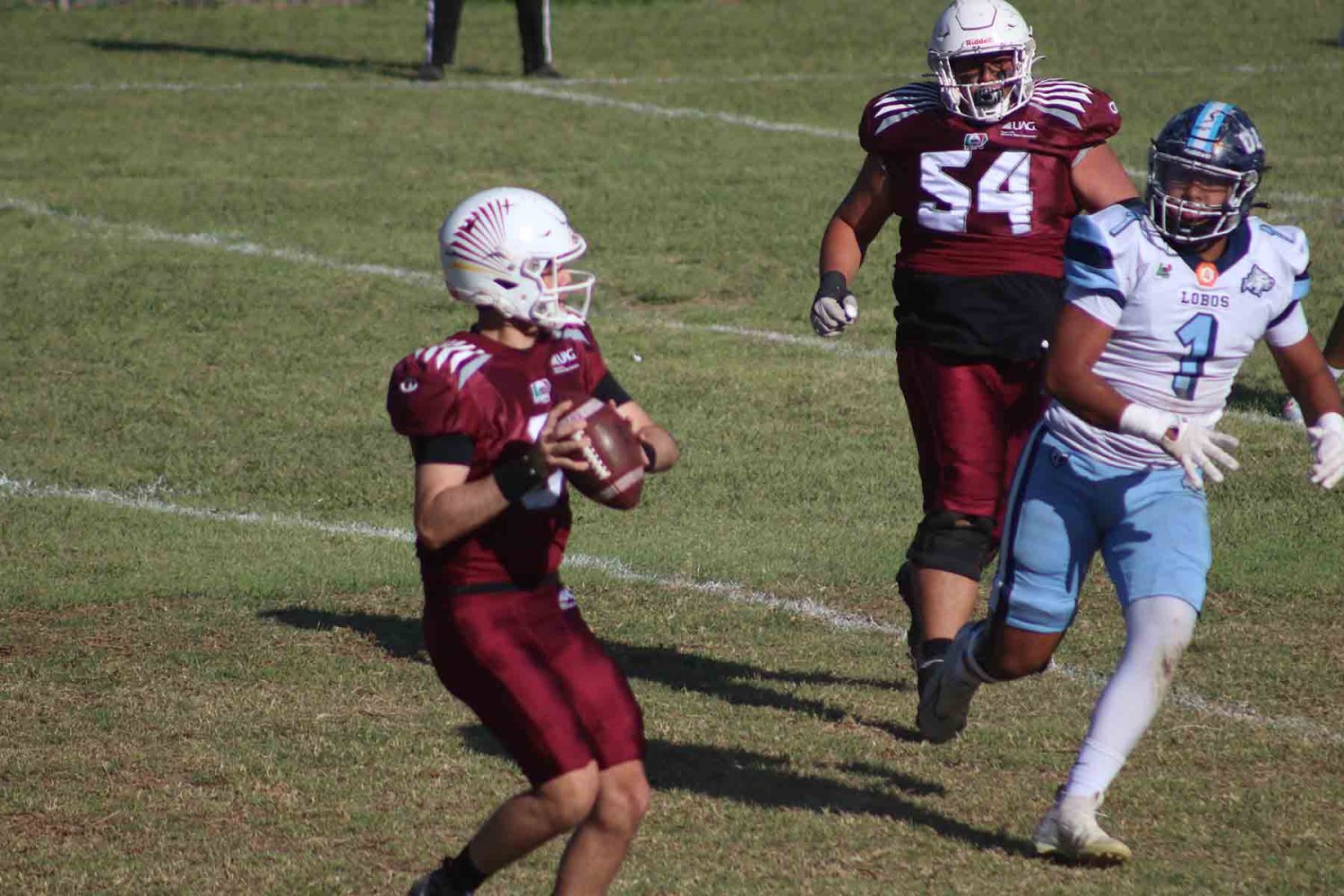 El partido contra Lobos ULM se disputó el sábado pasado en el campo “23 de Octubre” de la UAG y fue ampliamente dominado por los Tecos, que abrieron el marcador en el primer cuarto con un pase del QB Pablo Hernández a César Amador, anotaron la patada de conversión, y minutos más tarde volvieron a cruzar las diagonales con una carrera corta de Alan Casillas, enseguida hicieron bueno el punto extra y el marcador se puso 15-0.
