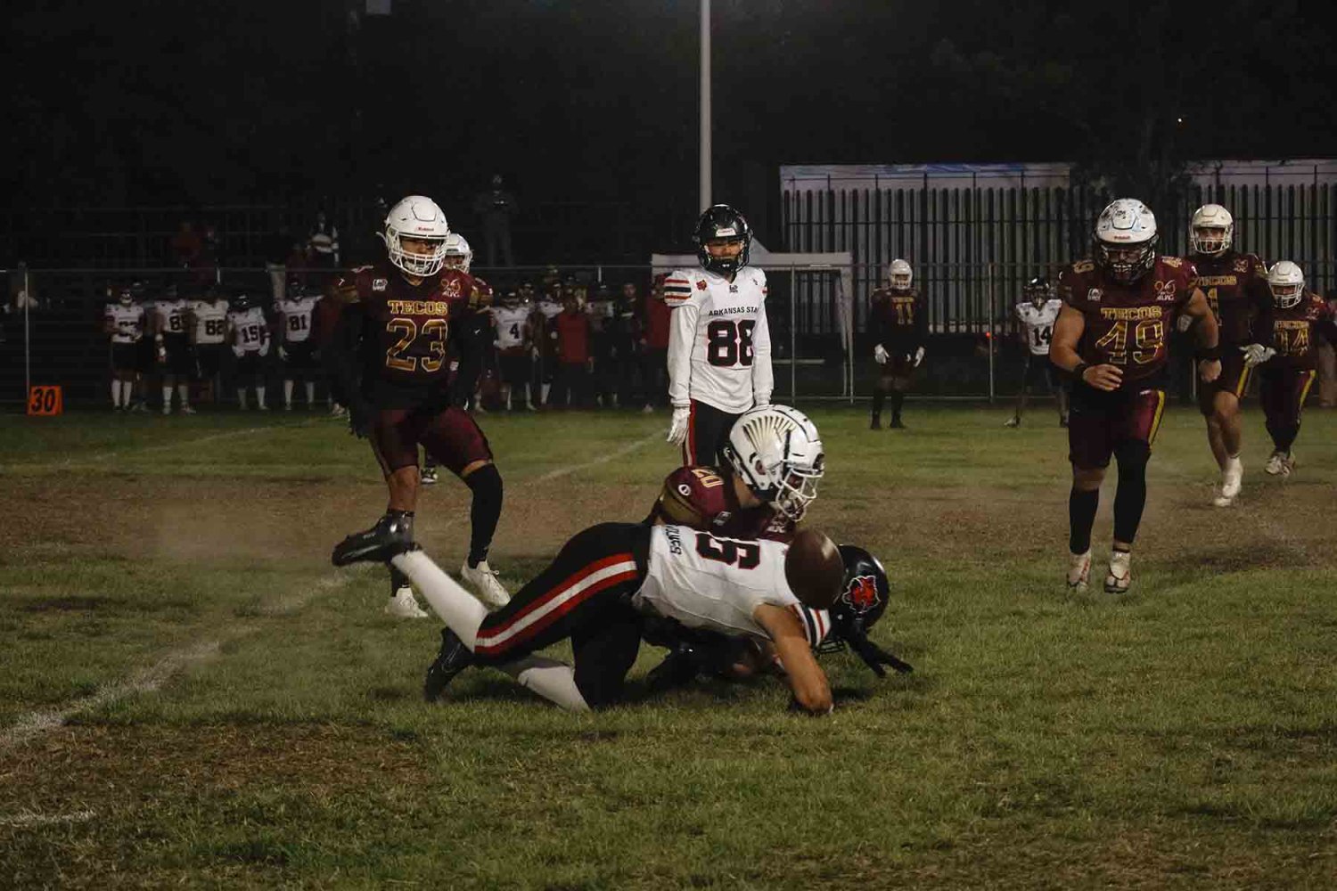 El marcador también le permitió al coach Mauricio Salas utilizar a tres quarterbacks a lo largo del partido: Emiliano Reyes, durante el primer tiempo, y Pablo Hernández y Samuel Mendoza en el segundo.