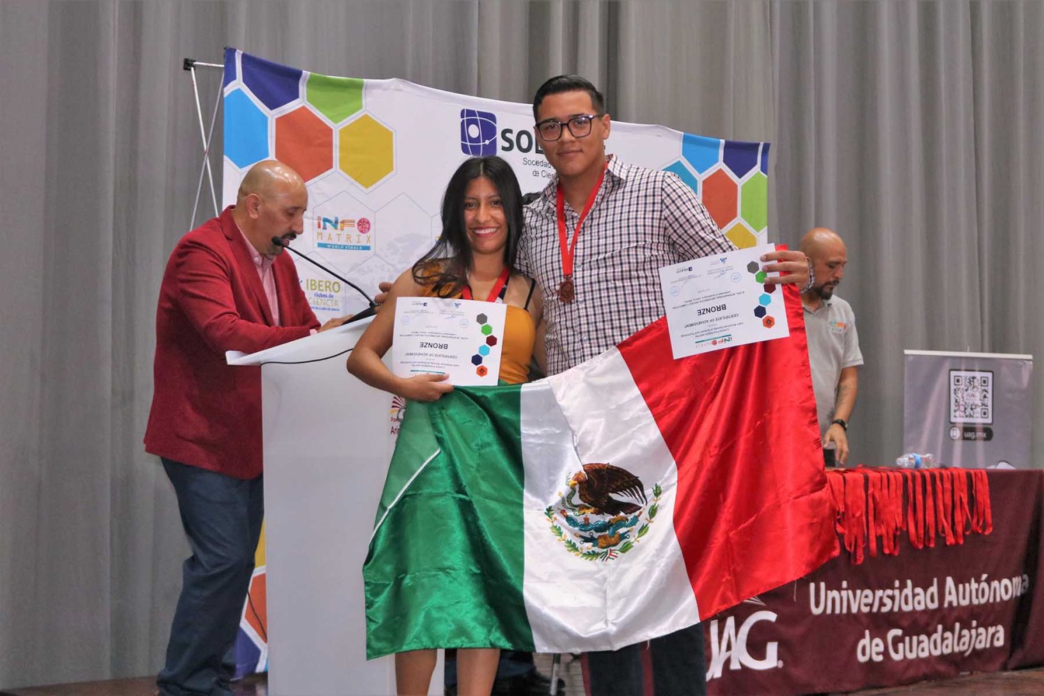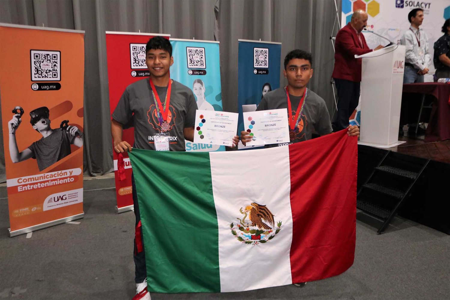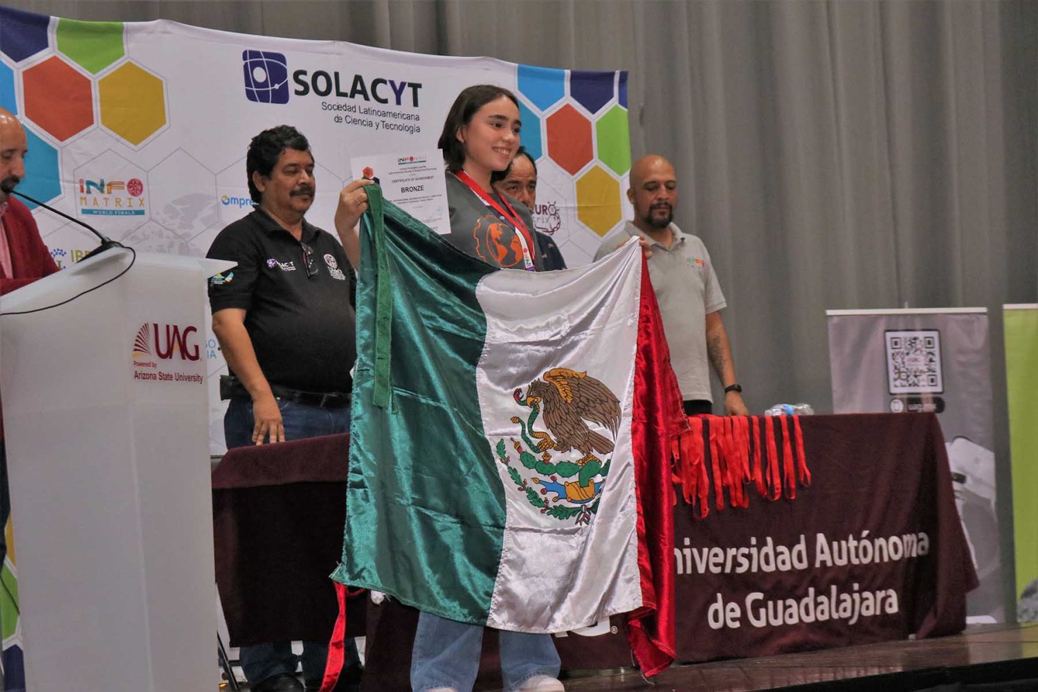La Coordinadora de investigación Temprana de Primaria, Secundaria y Preparatoria de la UAG, Mtra. Gloria Rosales Chávez fue su asesora. Esta es la segunda ocasión que la UAG es sede de la Final Mundial de Infomatrix, que en este año celebró su edición número 20.
