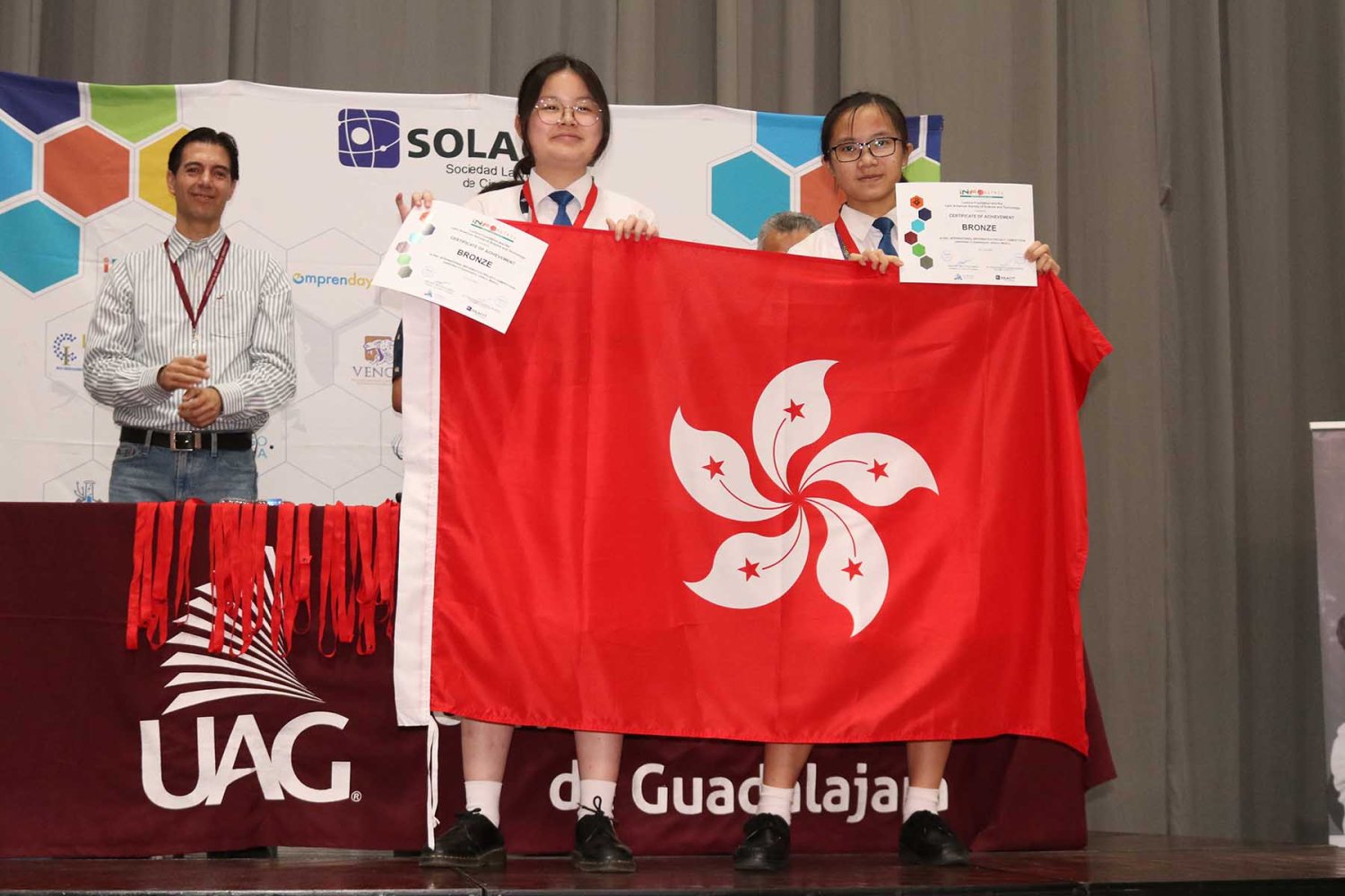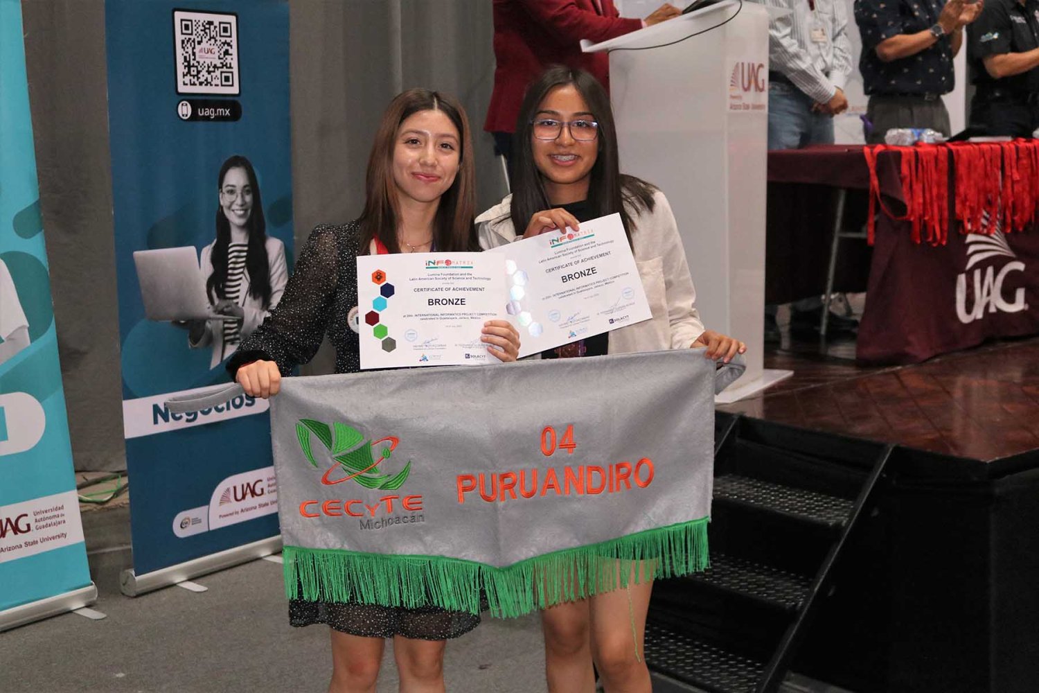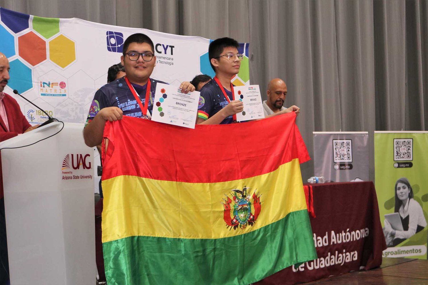 La Coordinadora de investigación Temprana de Primaria, Secundaria y Preparatoria de la UAG, Mtra. Gloria Rosales Chávez fue su asesora. Esta es la segunda ocasión que la UAG es sede de la Final Mundial de Infomatrix, que en este año celebró su edición número 20.