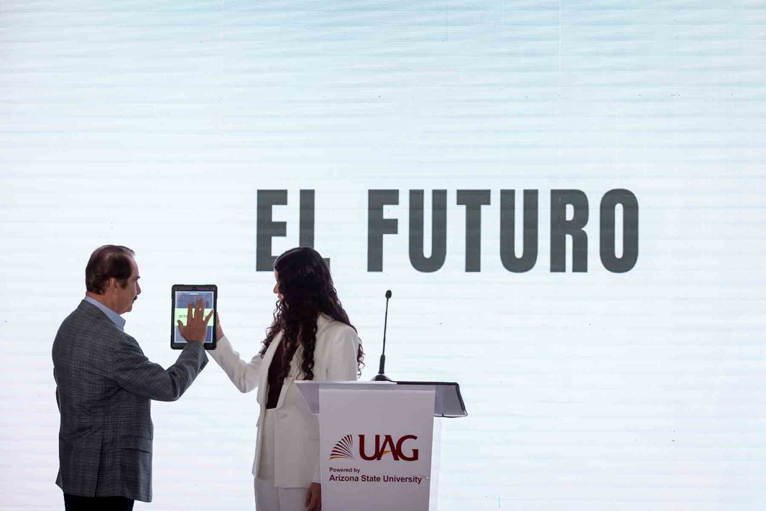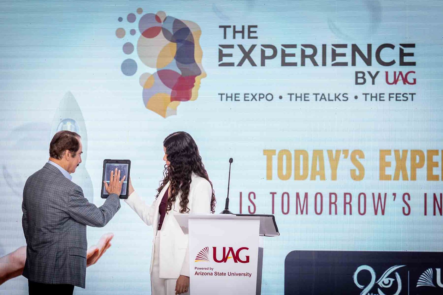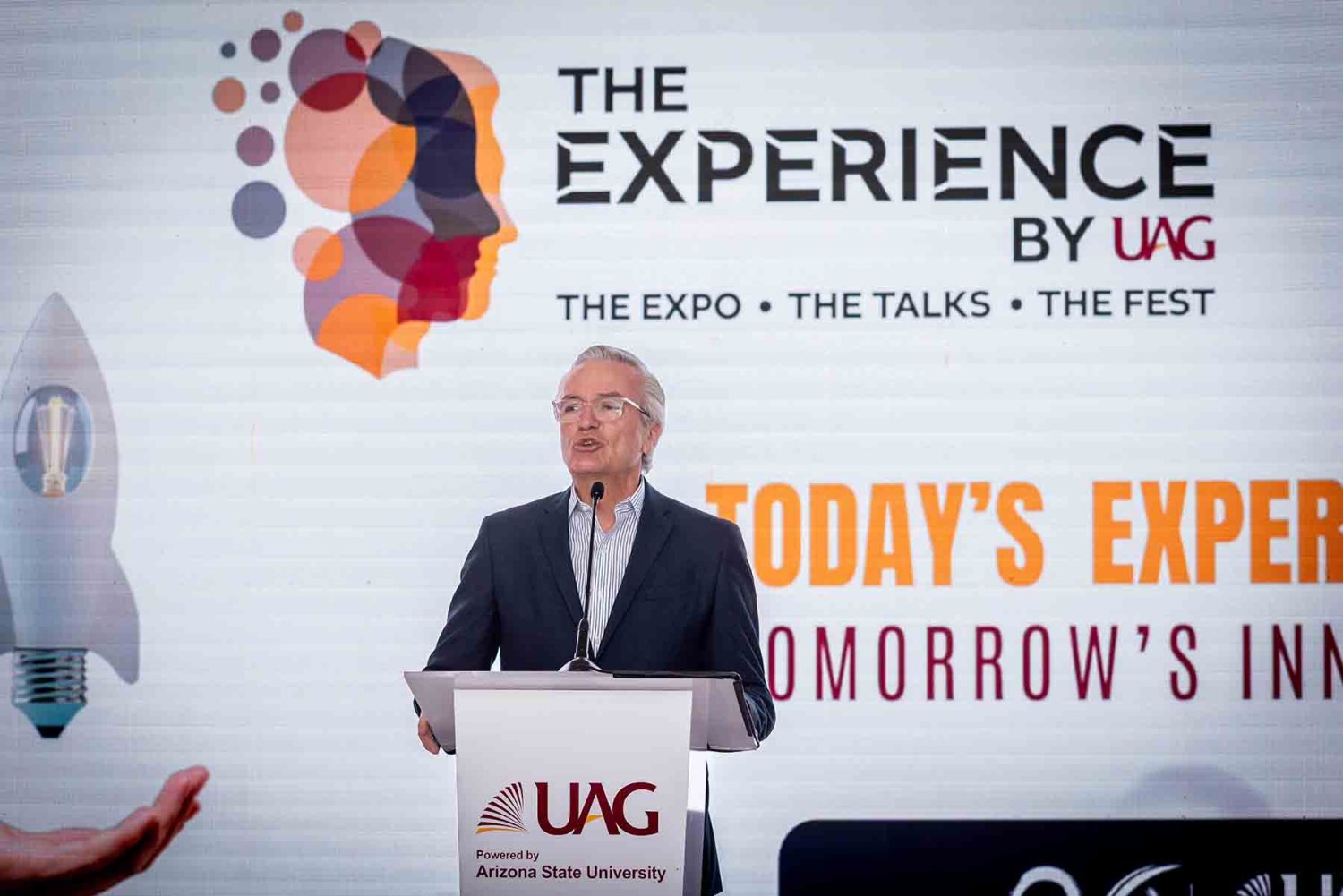 En su mensaje, recordó que “The Experience By UAG” tendrá una duración de tres días, el primero con “The Expo”, donde se presentaron proyectos.