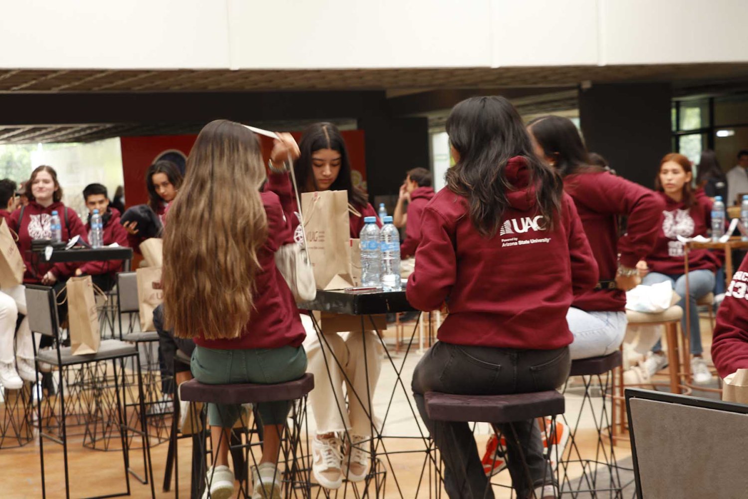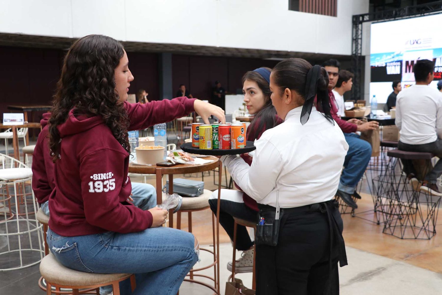 Después se les llevó a su mesa asignada por la carrera que eligieron, para que fueran atendidos por meseros con servicio de comida y bebidas refrescantes.