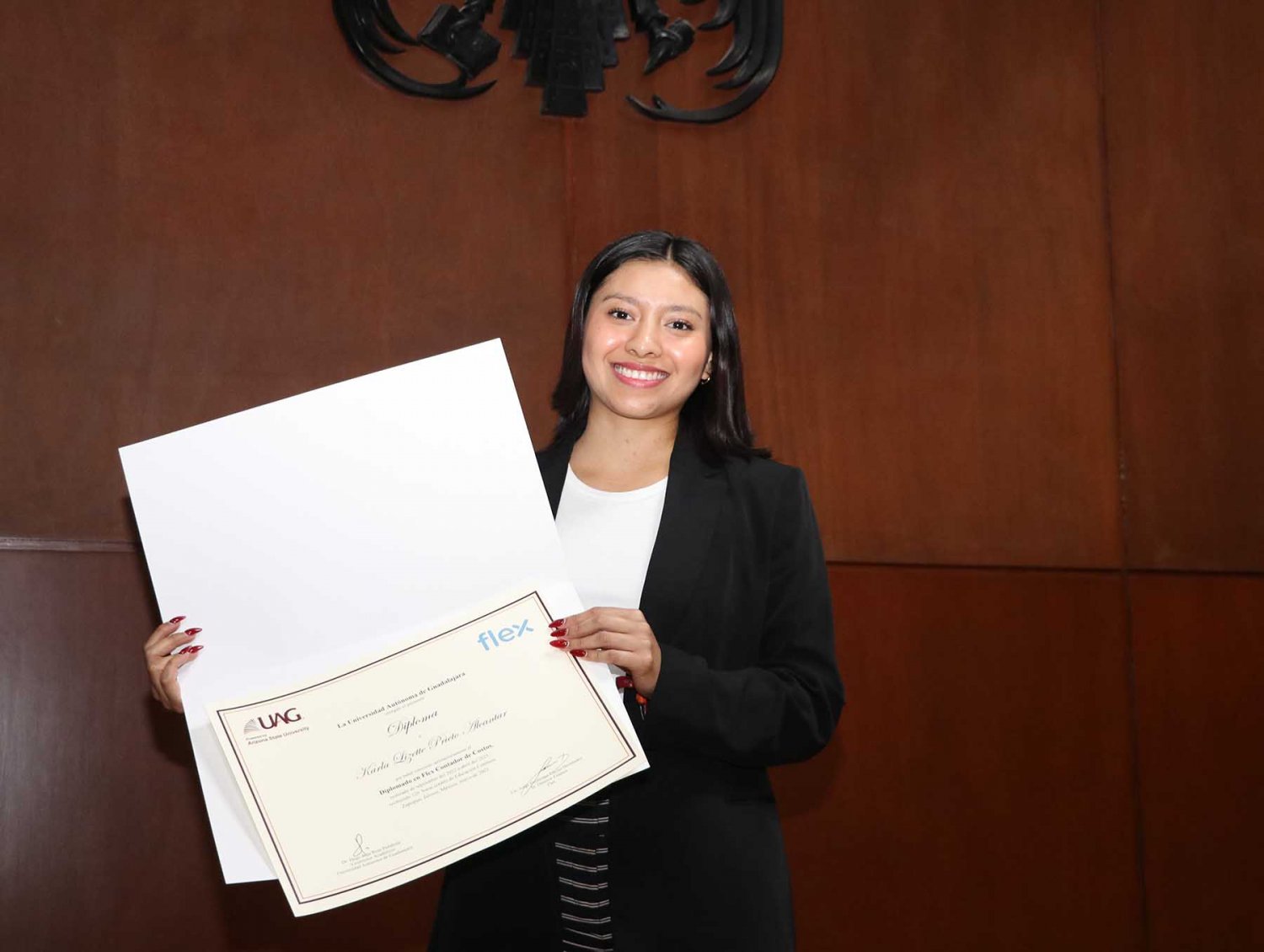 Después, Monserrat Guadalupe Delgadillo Pinedo, alumna del Diplomado en representación de sus compañeros, agradeció por el tiempo y los conocimientos adquiridos en la UAG.