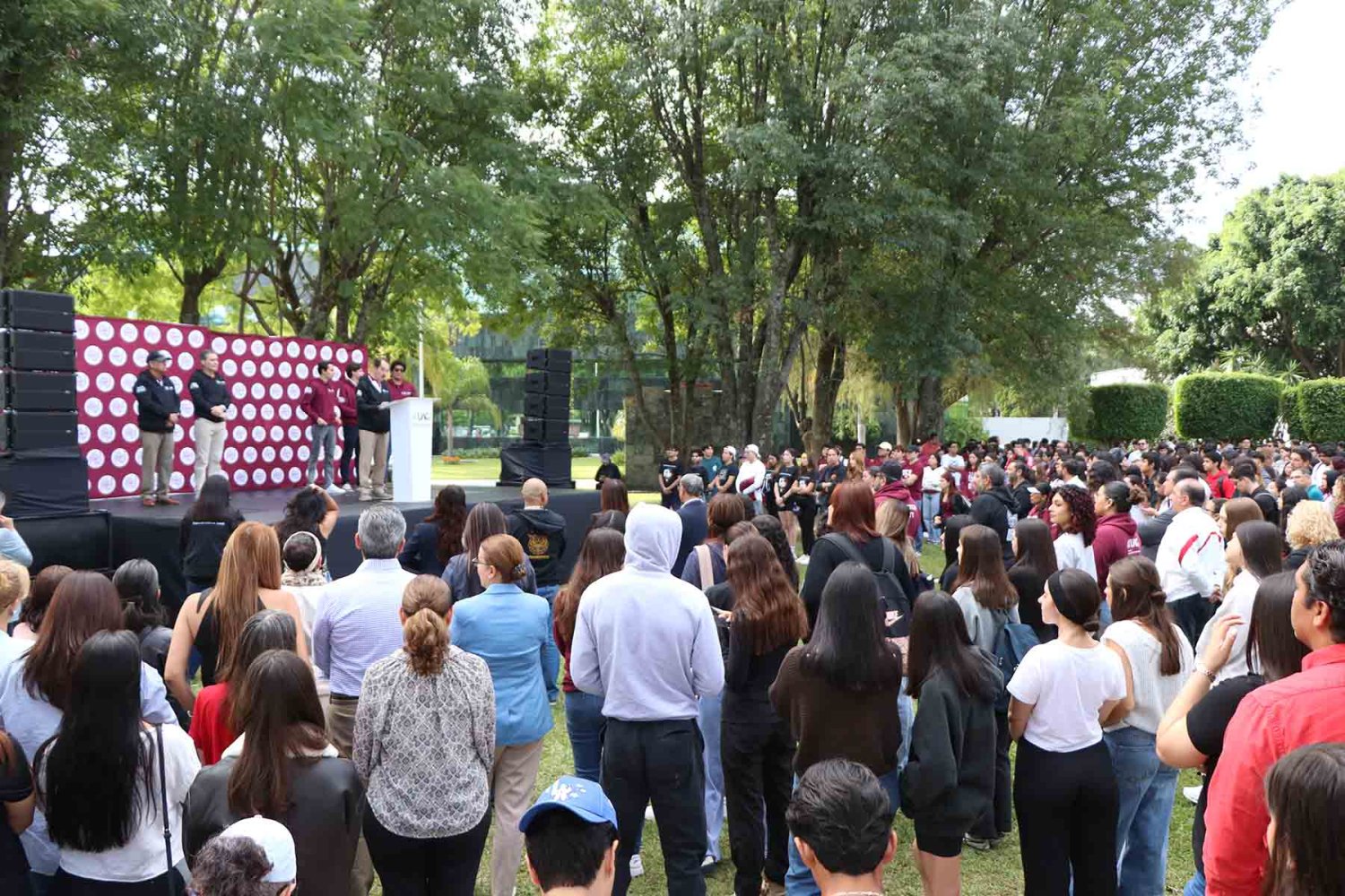 La inauguración del festejo se realizó frente del Edificio “A” de Ciudad Universitaria, donde el Rector de la UAG, el Lic. Antonio Leaño Reyes, dio un mensaje a los estudiantes.