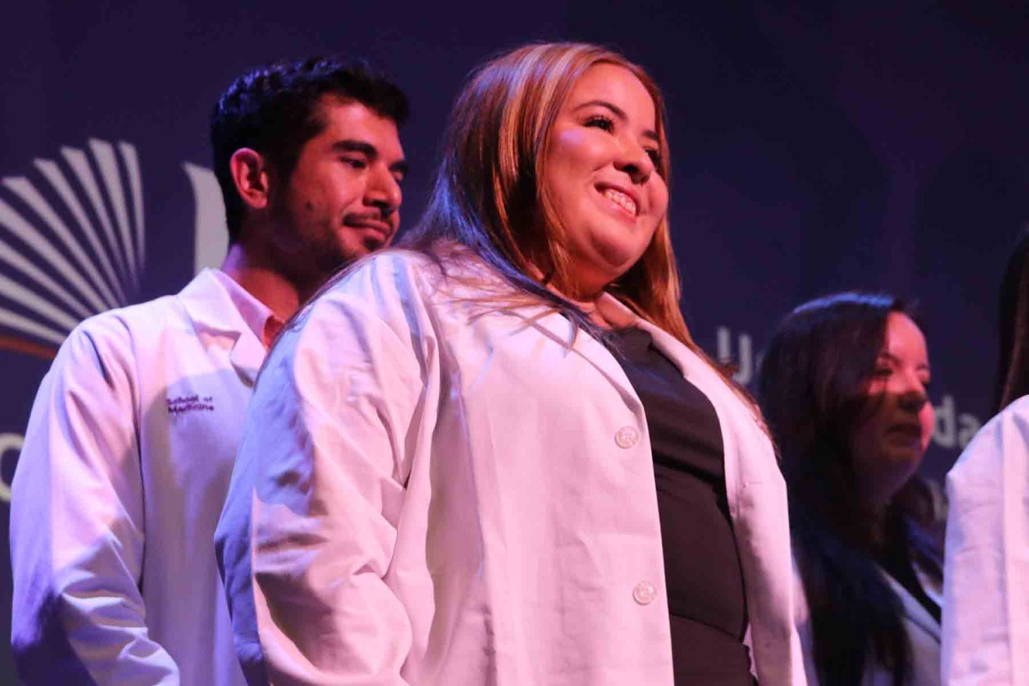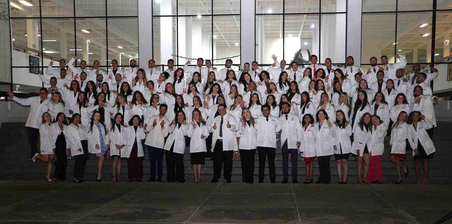 El día culminó con la emotiva Ceremonia de Batas Blancas, realizada en el Auditorio Antonio Leaño Reyes, en Ciudad Universitaria. Cada estudiante se puso por primera vez su bata clínica, simbolizando su entrada formal a la profesión médica. La ceremonia concluyó con una foto grupal en la icónica Biblioteca Central de la UAG, capturando el orgullo y la emoción de la nueva generación.