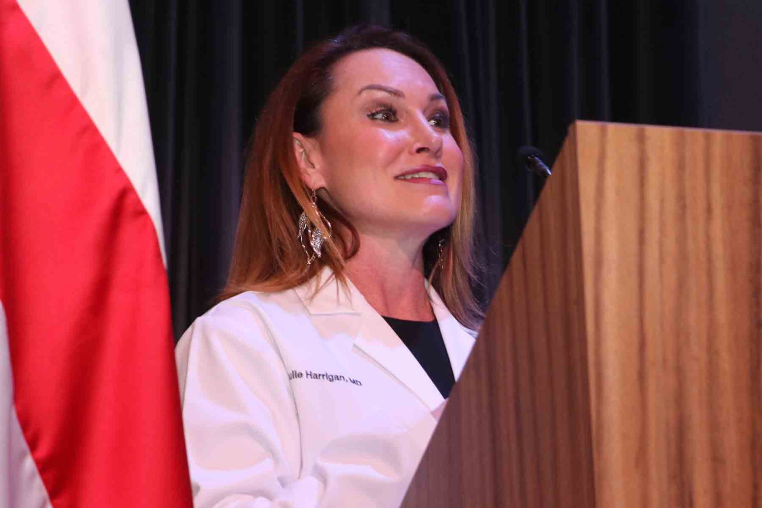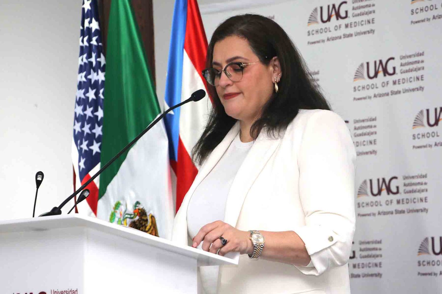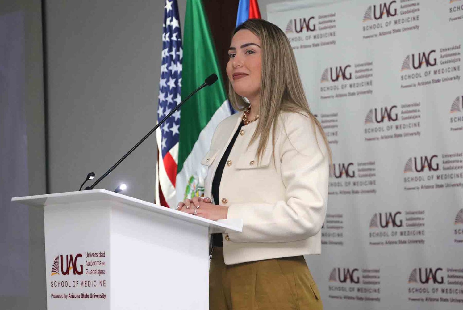 El evento contó con la presencia del Rector de la UAG, el Lic. Antonio Leaño Reyes; el Decano de la Facultad de Medicina, el Dr. Kashif Ahmad; y la distinguida egresada, la Dra. Julie Harrigan quien, con más de 13 años de experiencia en medicina hospitalaria, informática en salud y liderazgo médico, compartió un mensaje inspirador, alentando a los estudiantes a honrar los valores de integridad, compasión y responsabilidad que definen la profesión médica.