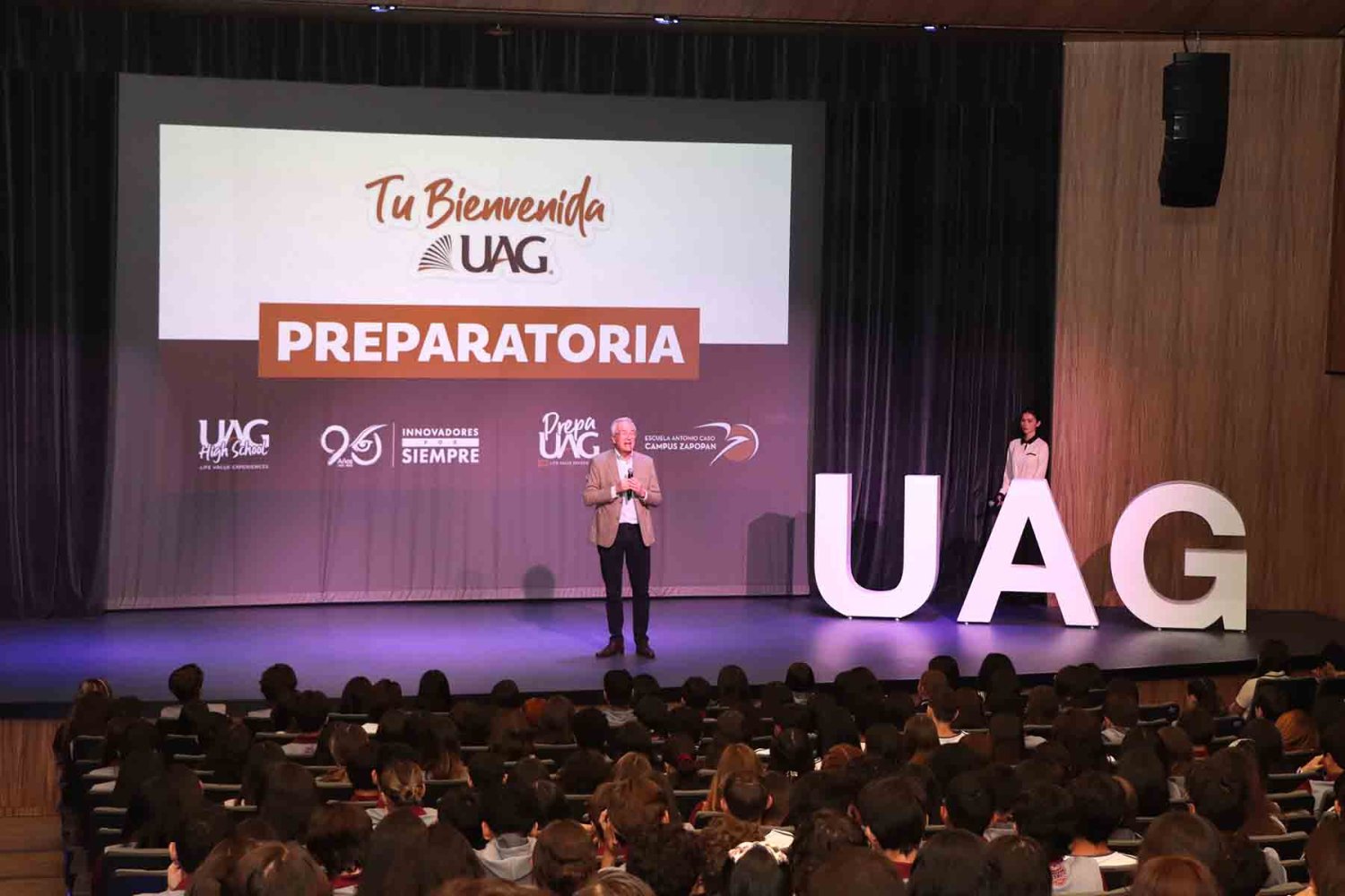 El Sistema Educativo de la Universidad Autónoma de Guadalajara (UAG) recibió a cientos de nuevos estudiantes que se incorporan a las preparatorias UAG High School, Prepa UAG Campus Santa Anita y Escuela Antonio Caso Zapopan (EACZ), mediante la ceremonia “Tu Bienvenida UAG: Preparatoria”, en el Auditorio “Lic. Antonio Leaño Reyes”, para conocer más sobre la institución que los acompañará en esta etapa crucial.