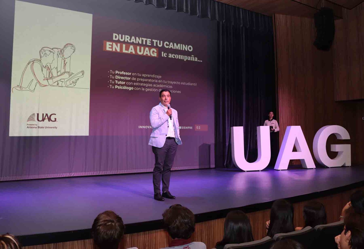 Durante la ceremonia, el Ing. José Tomás Ornelas Salas, Director de Asuntos Estudiantiles, presentó a los jóvenes los recursos y beneficios que tendrán como parte de la comunidad autónoma, como UAG Solutions, la red de bibliotecas, actividades culturales y deportivas, además de la amplia oferta de apoyo académico.