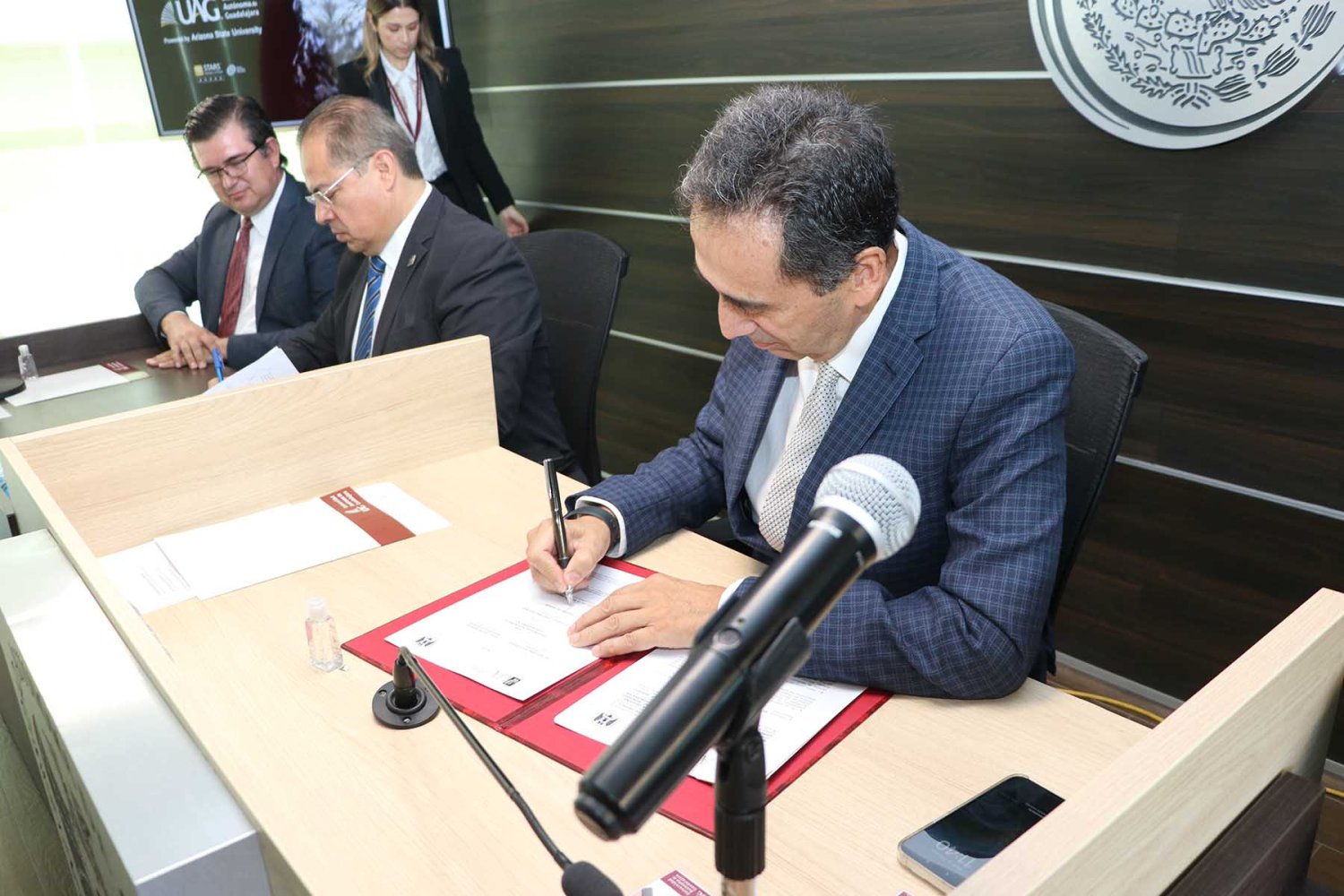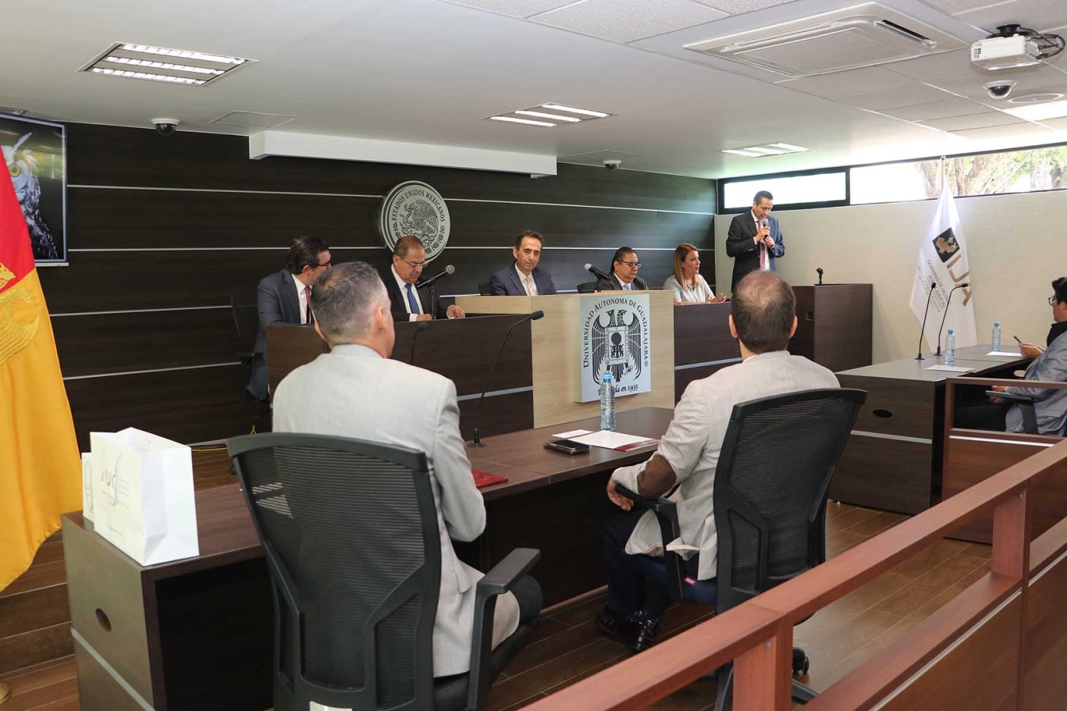 Este evento contó con la presencia, por parte de la UAG, del Mtro. Ángel Israel Muñoz Hernández, Decano de Ciencias Sociales, Económico y Administrativas: Mtra. Imelda Cota López, Directora del Programa de Derecho; Lic. Carlos González Barragán, Director de Vinculación y Relaciones Institucionales; y Mtro. Miguel Navarro Castellanos, Director del Departamento Académico de Ciencias Jurídicas y Relaciones Internacionales; y el Mtro. Xavier Marconi Montero Villanueva, Secretario Técnico del IJA.