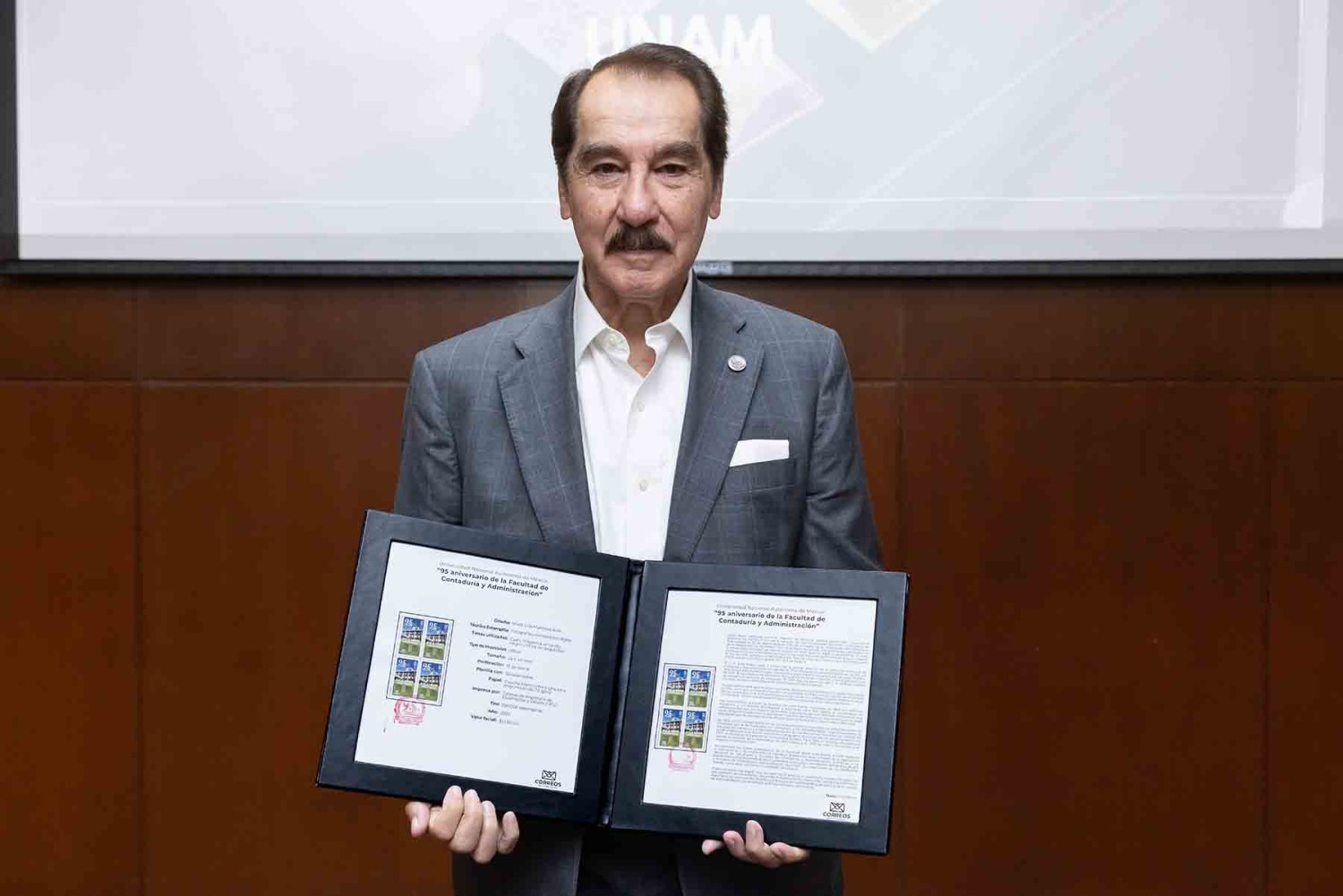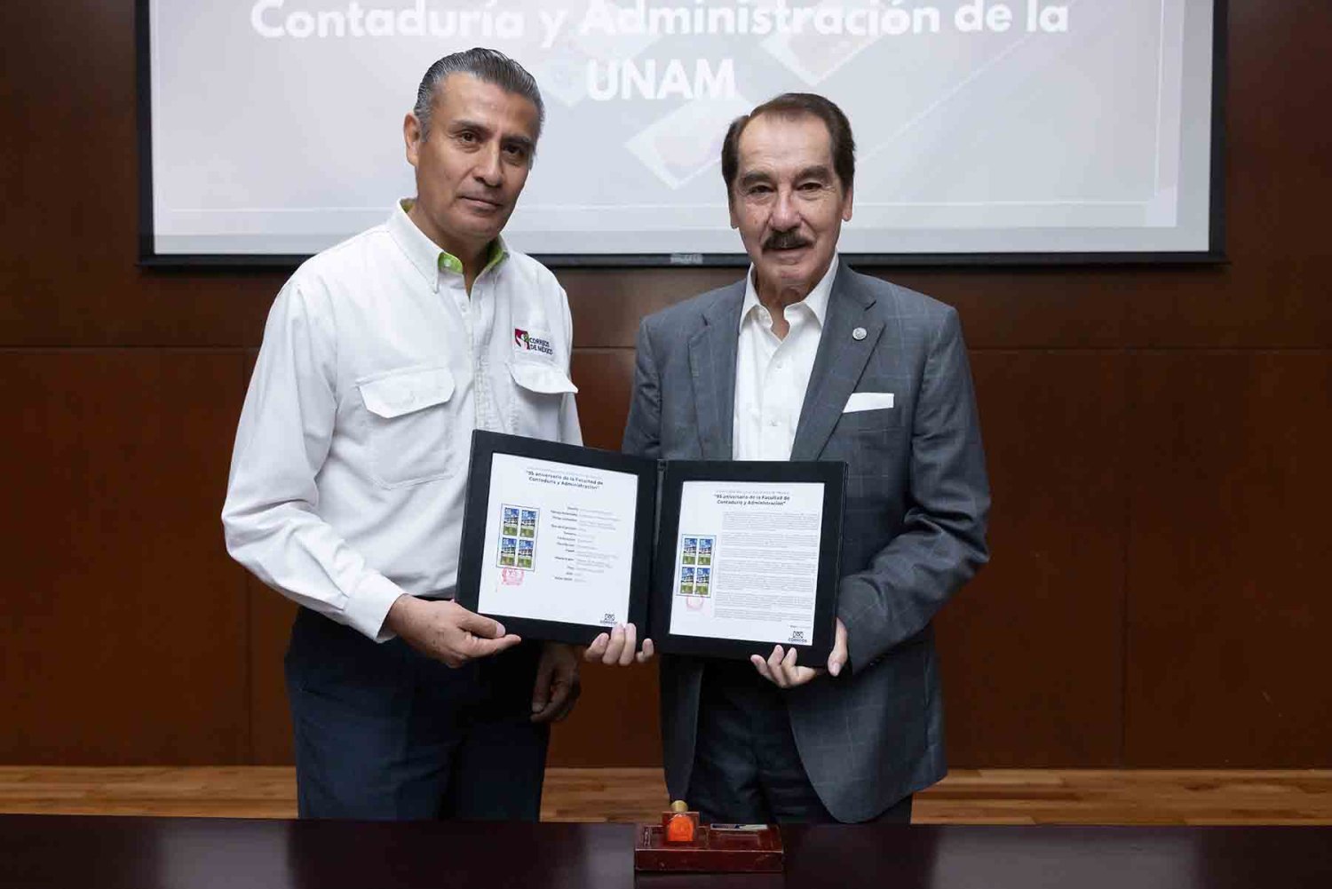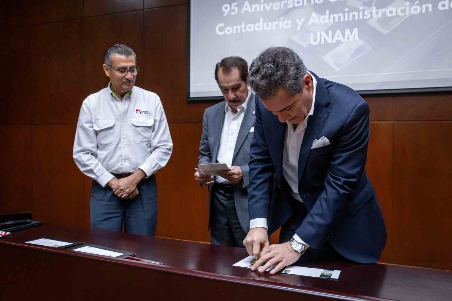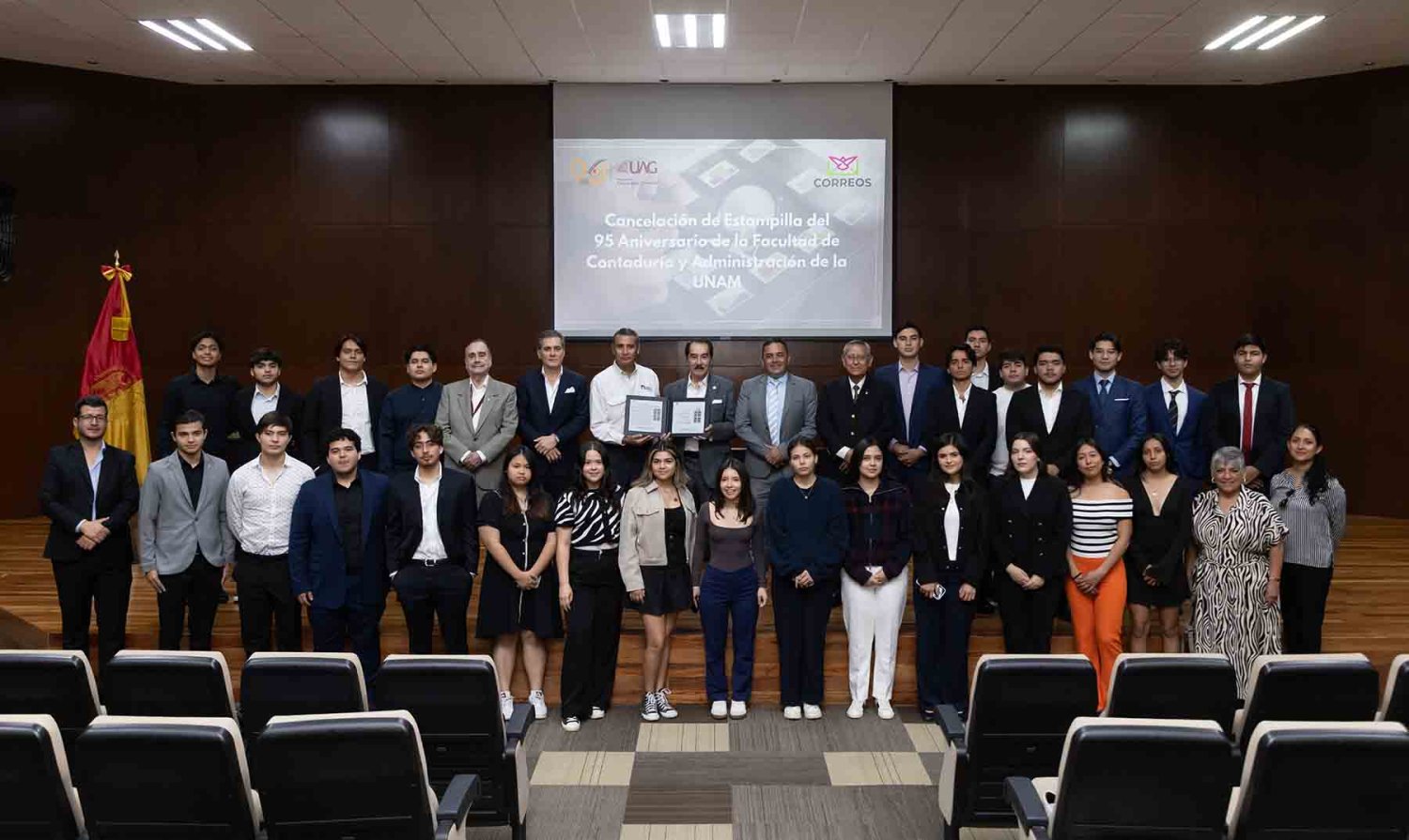En esta institución se realizó la ceremonia que cancela el timbre postal especial del 95 aniversario de la Facultad de Contaduría y Administración de la UNAM.