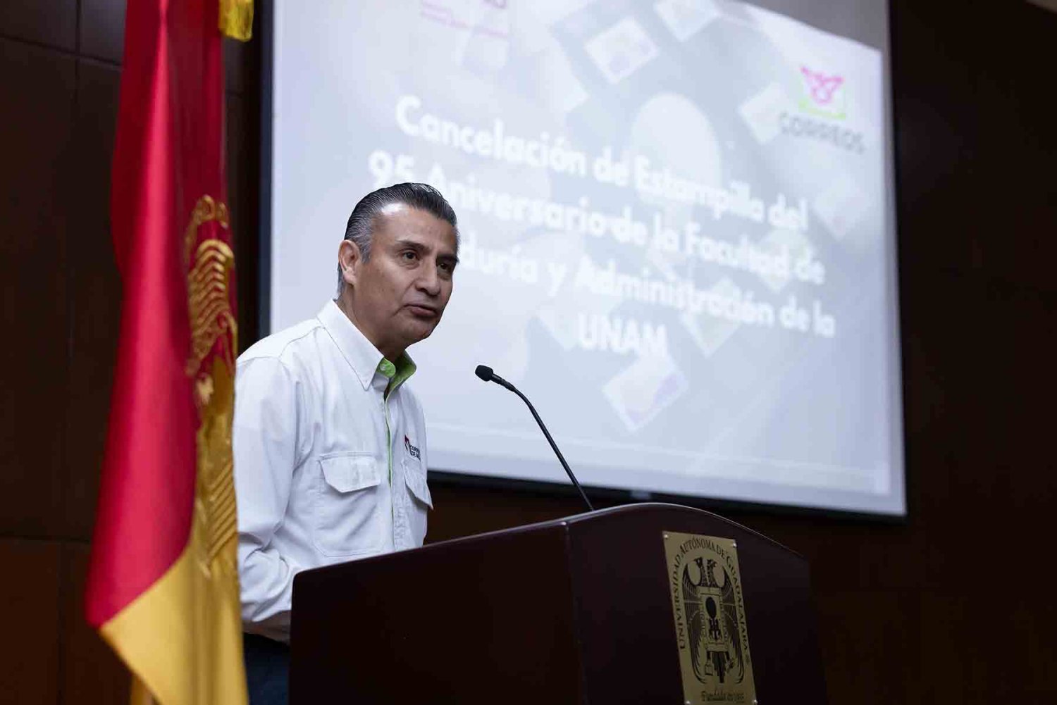 Agregó que cancelar la estampilla conmemorativa del 95 aniversario de la Facultad de Contaduría y Administración de la UNAM tiene un especial significado para la UAG, ya que la institución nacional acompañó por muchos años a la Autónoma en el reconocimiento de sus programas.