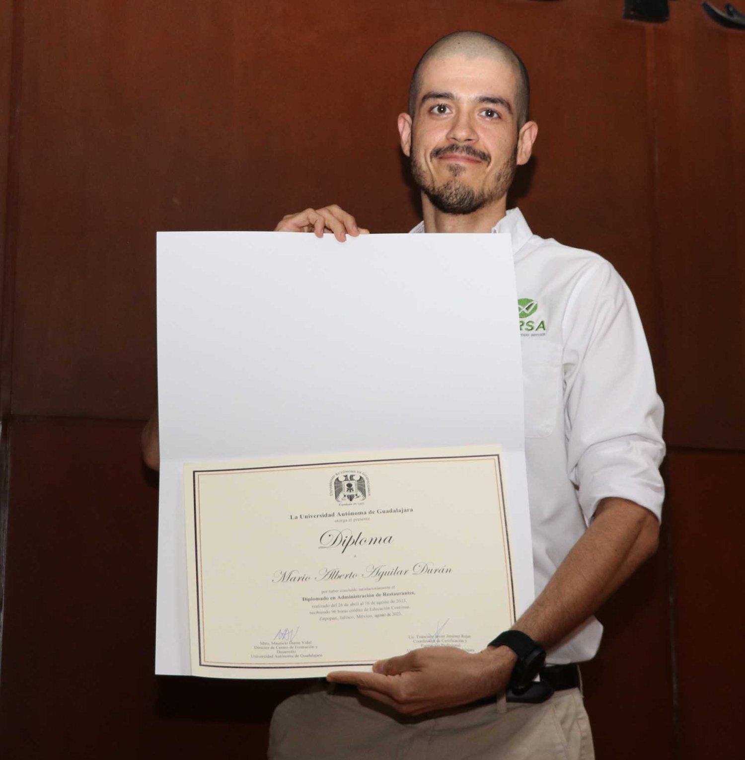 El Centro de Formación y Desarrollo (CFD), de la Universidad Autónoma de Guadalajara (UAG), realizó la ceremonia de clausura del Grupo 35 del Diplomado en Administración de Restaurantes, donde se entregó a los participantes su constancia por haberse capacitado para seguir contribuyendo a la industria restaurantera de una manera innovadora, única y eficaz.