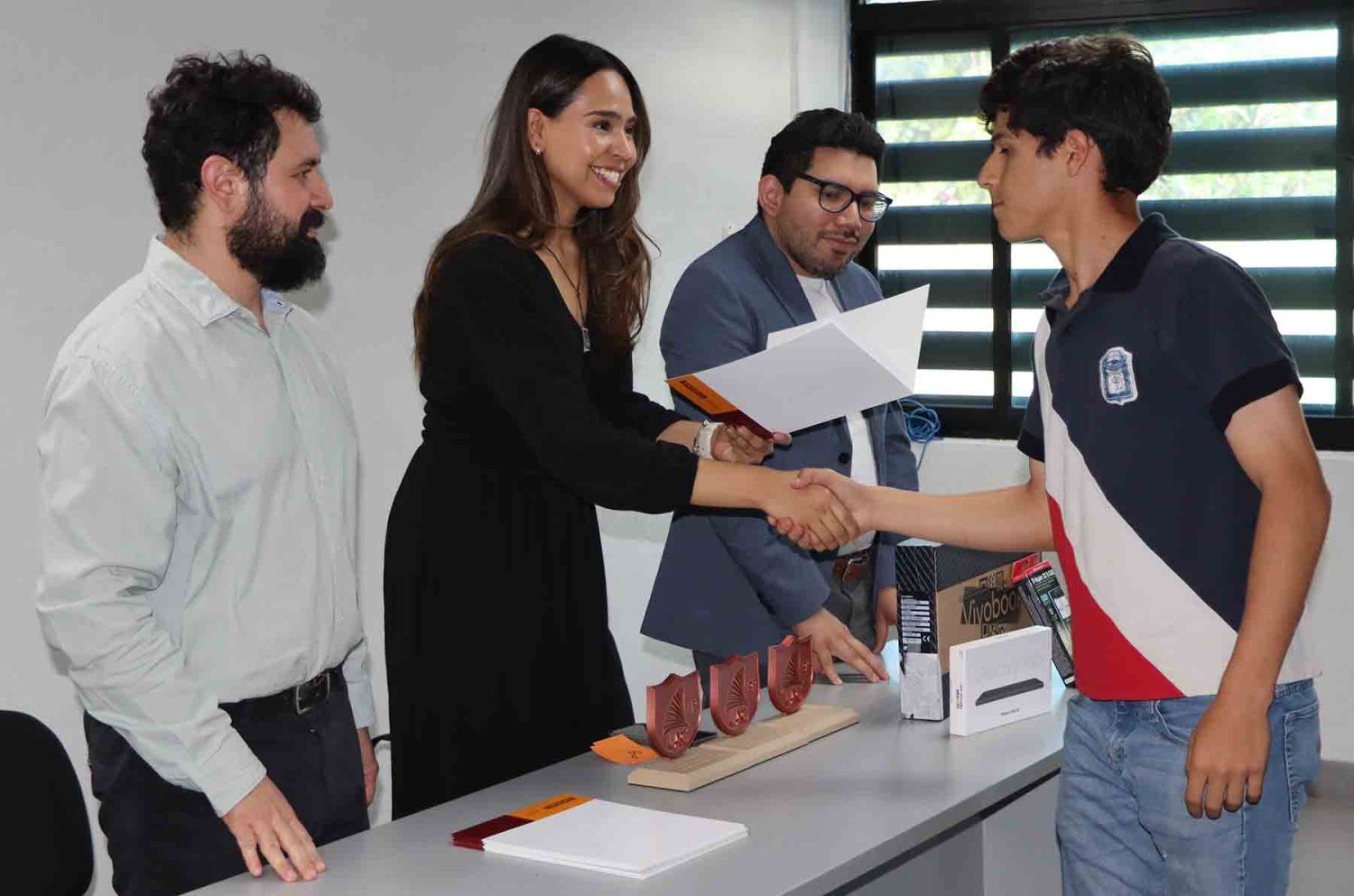 Los premios y reconocimientos fueron entregados por la Mtra. Lucía Vega Núñez, Directora de la Lic. de Actuaría y Ciencia de Datos de la UAG; el Dr. Iván Reyes Cabrera, Director del Departamento de Ciencias Básicas, y el Dr. Rodrigo Romero Aguilar, Representante del Comité Técnico del Torneo.