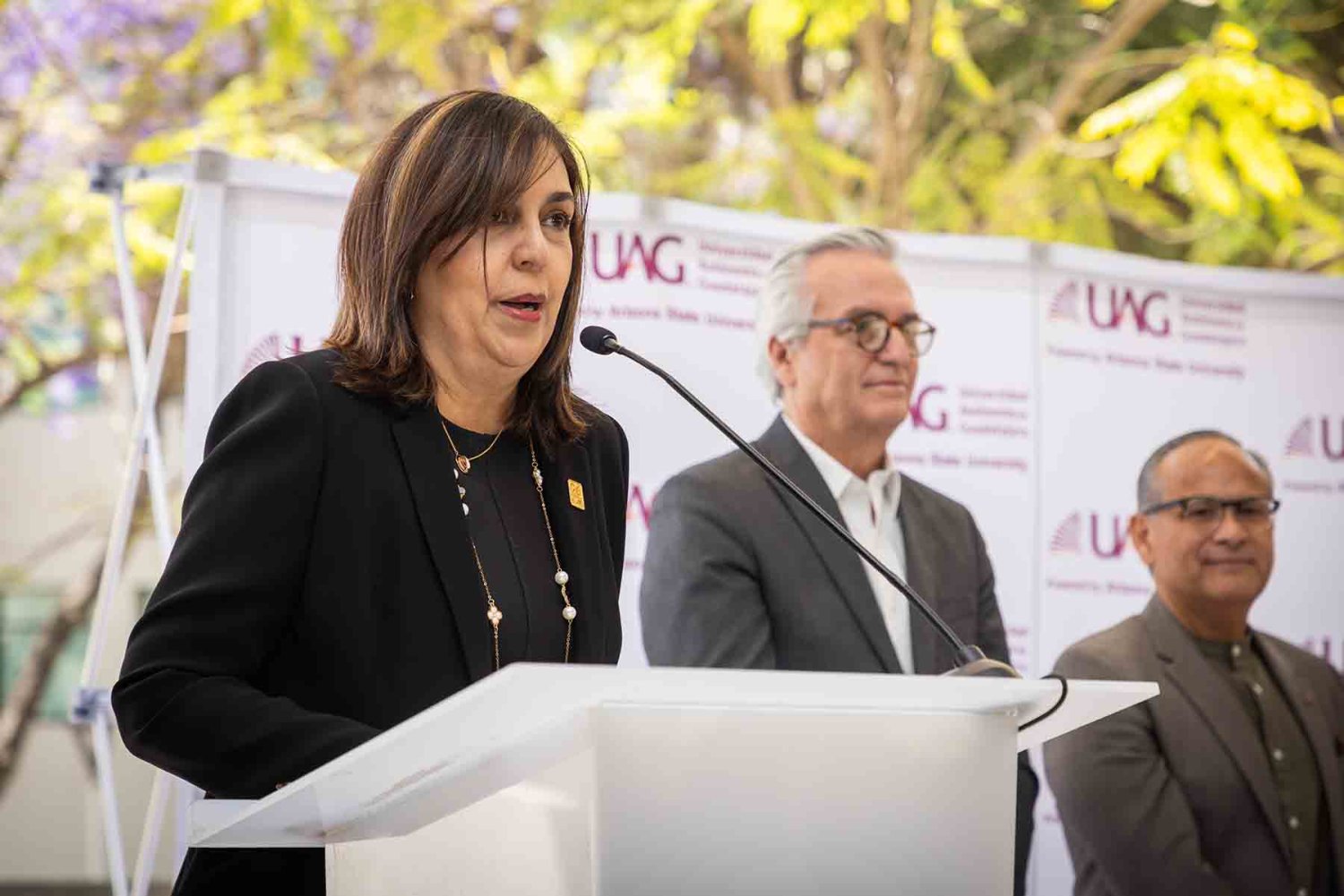 Por su parte, la Dra. Beatriz Tinoco Torres, Decana de Medicina de la UAG, tomó la palabra para asegurar que este centro marca un hito en la educación en salud con un espacio innovador, único y transformador porque revolucionará la formación de profesionales en las carreras de Medicina, Odontología, Enfermería, Nutrición, Fisioterapia, Psicología y Químico Farmacobiología, que se ofrecen en la UAG.