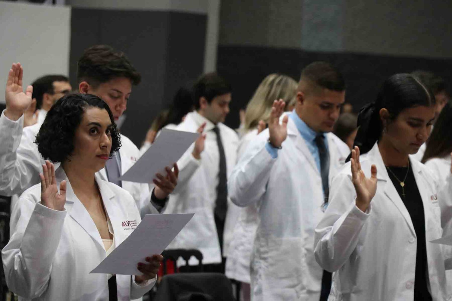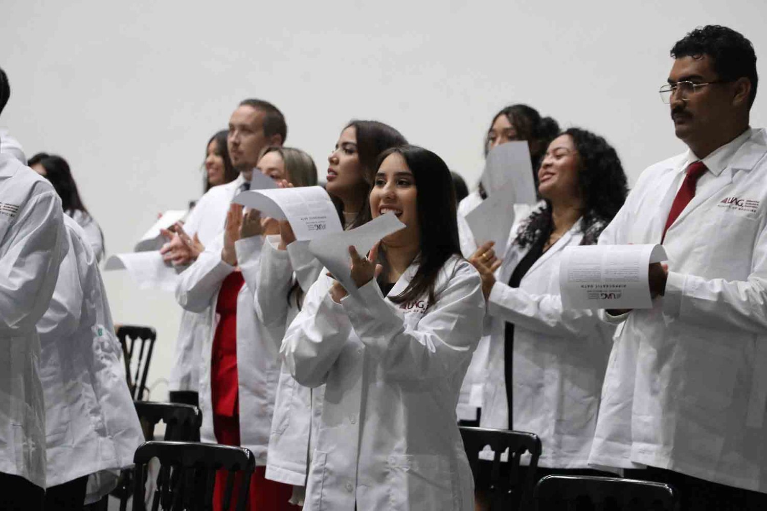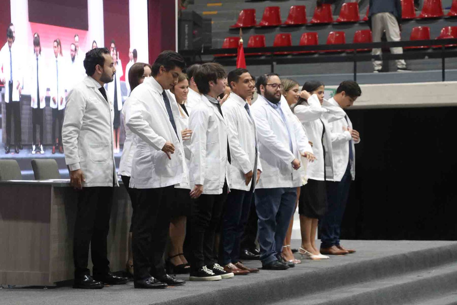 La bata blanca es un símbolo que representa ética, profesionalismo y compromiso con la profesión médica; por ello, cada estudiante la recibió en una ceremonia especial realizada en el Gimnasio Universitario.