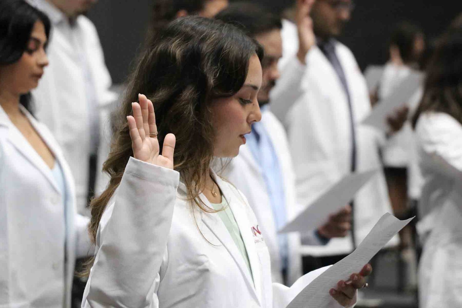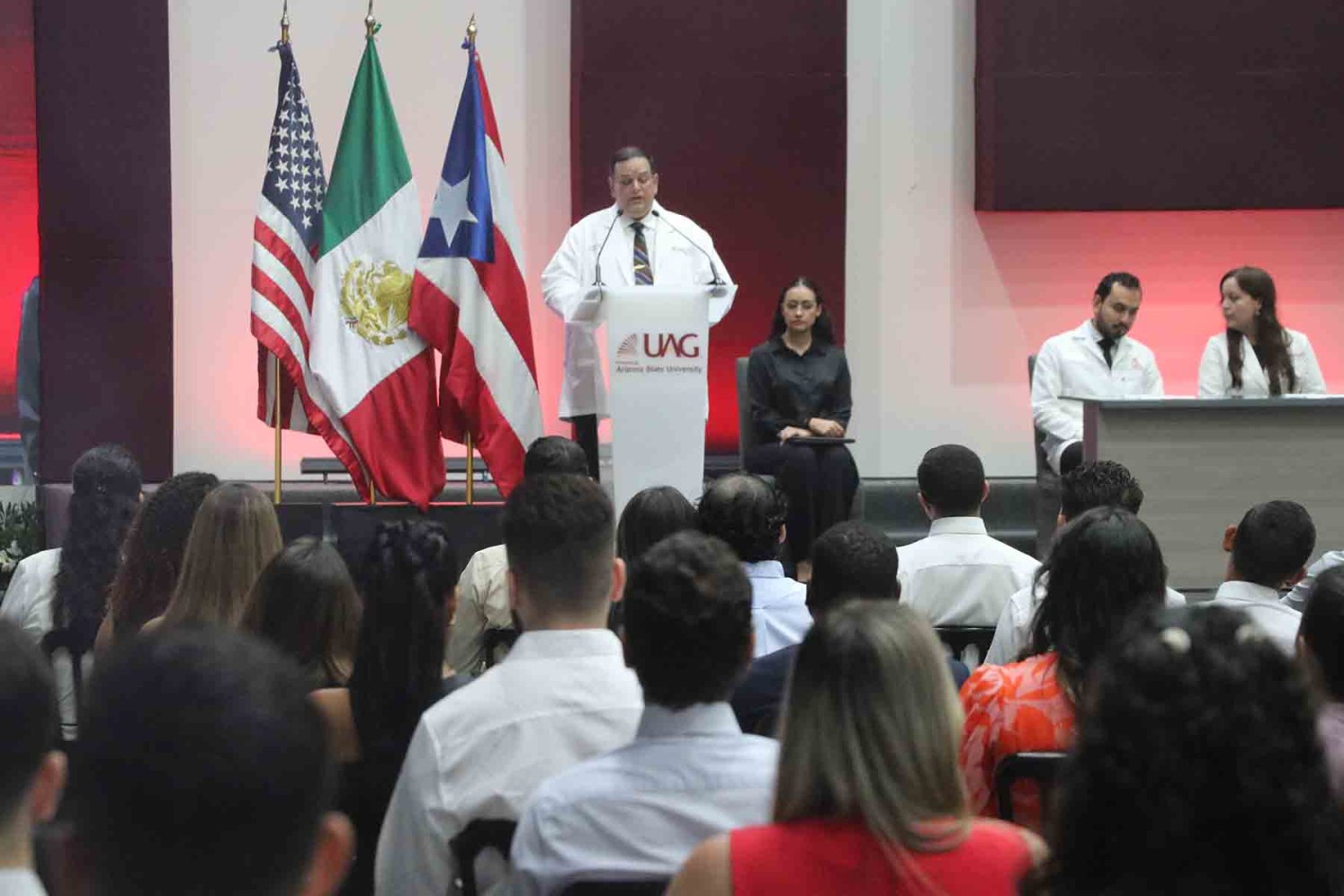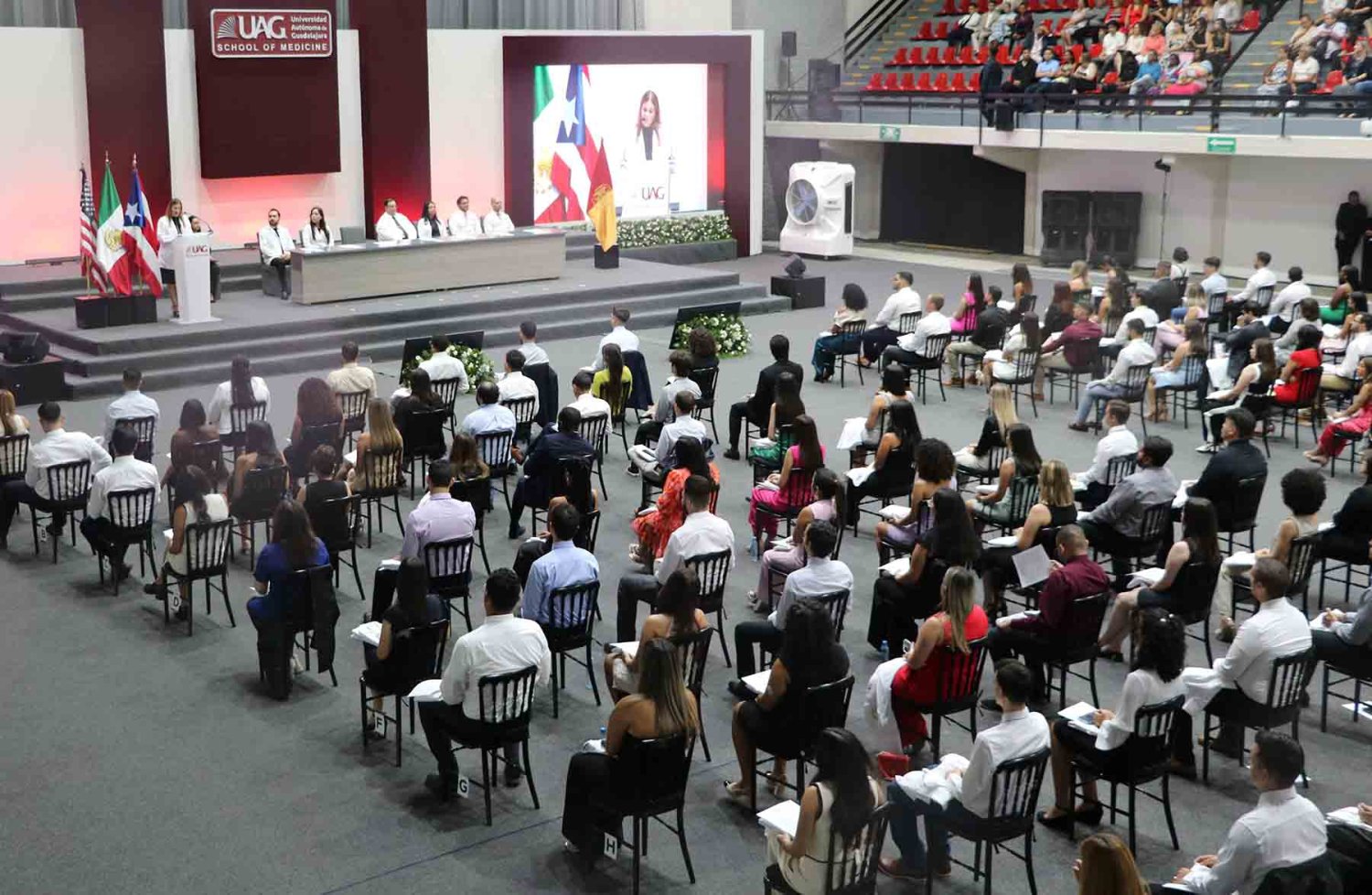 La bata blanca es un símbolo que representa ética, profesionalismo y compromiso con la profesión médica; por ello, cada estudiante la recibió en una ceremonia especial realizada en el Gimnasio Universitario.