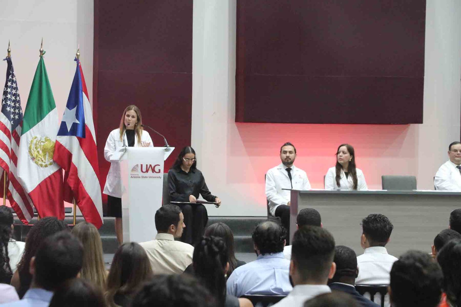 “Es un honor estar aquí… históricamente la bata blanca ha sido reconocida como el símbolo universal de los profesionales de la Medicina. El color blanco representa esperanza y símbolo de verdad, pureza y respeto”, comentó la Dra. Egozcue.