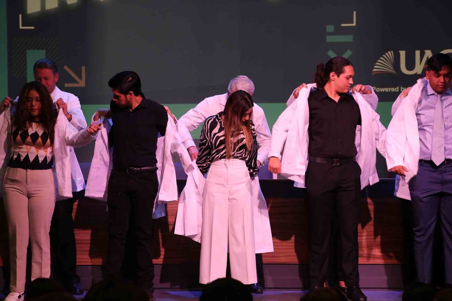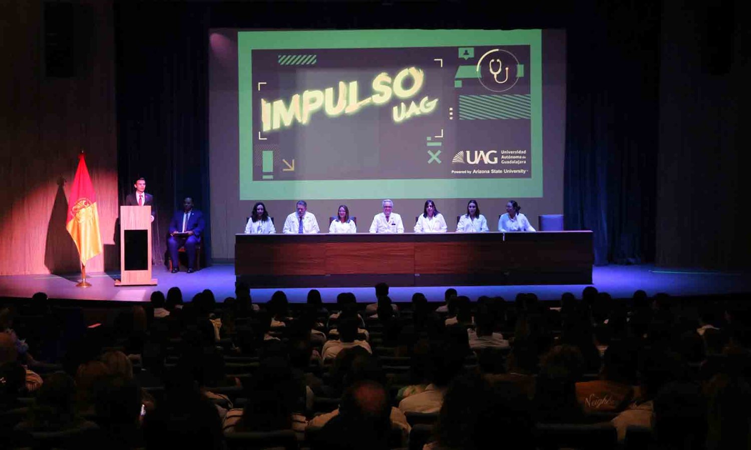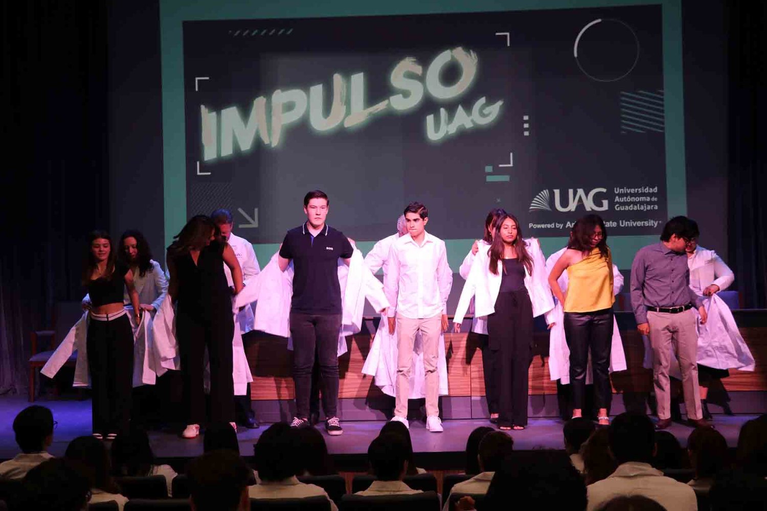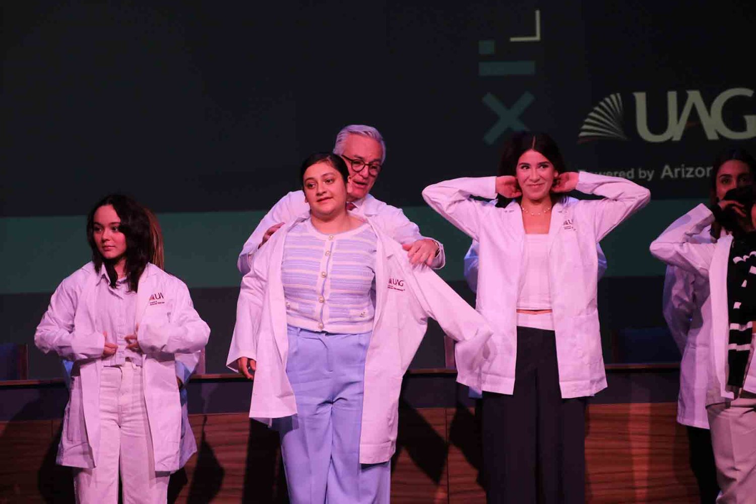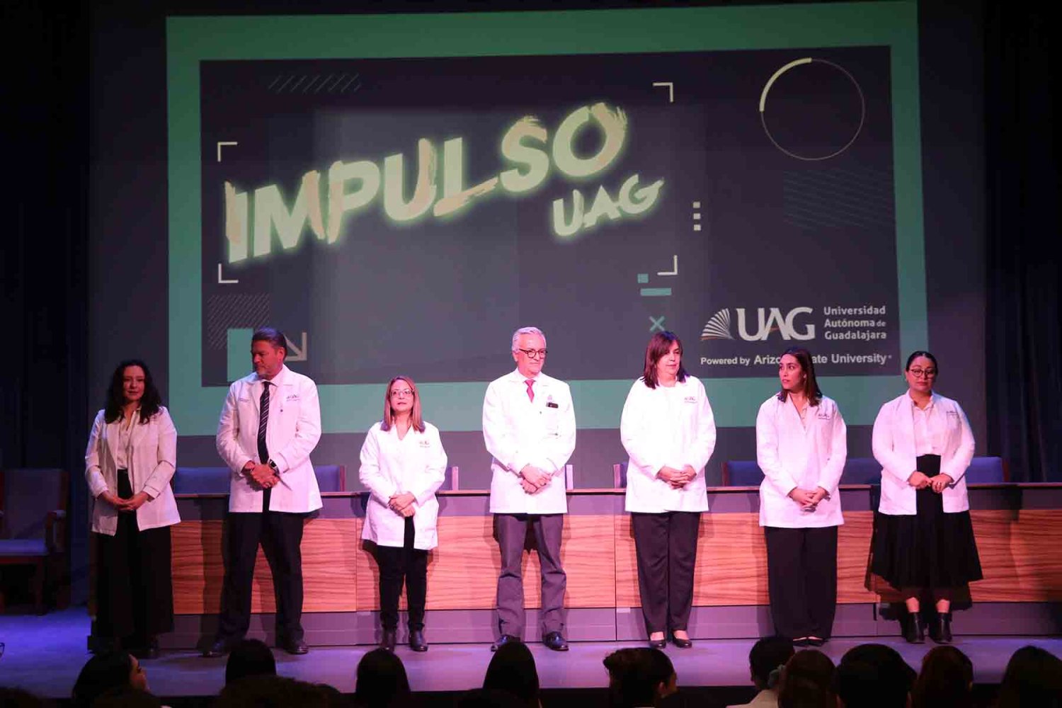 Debido a lo anterior, la UAG realizó la ceremonia de bienvenida “Impulso UAG” a los nuevos estudiantes de la carrera de Médico Cirujano, donde como acto simbólico las autoridades académicas les colocaron su primera bata blanca, uno de los símbolos más importantes de esta noble profesión, acompañados de sus familiares y amigos.
