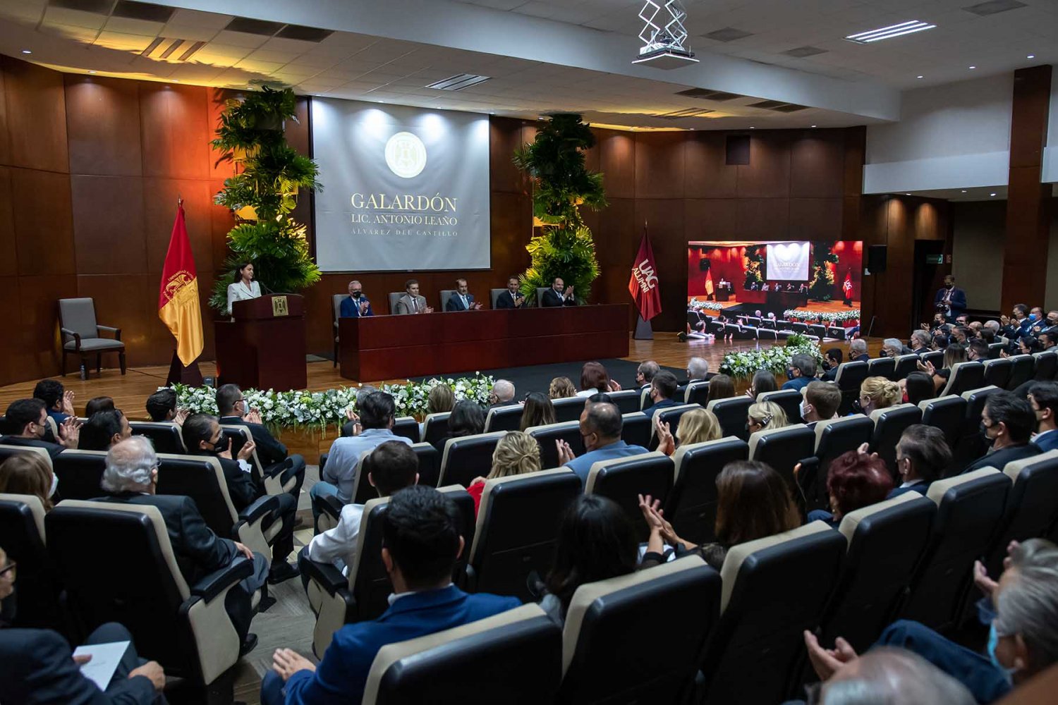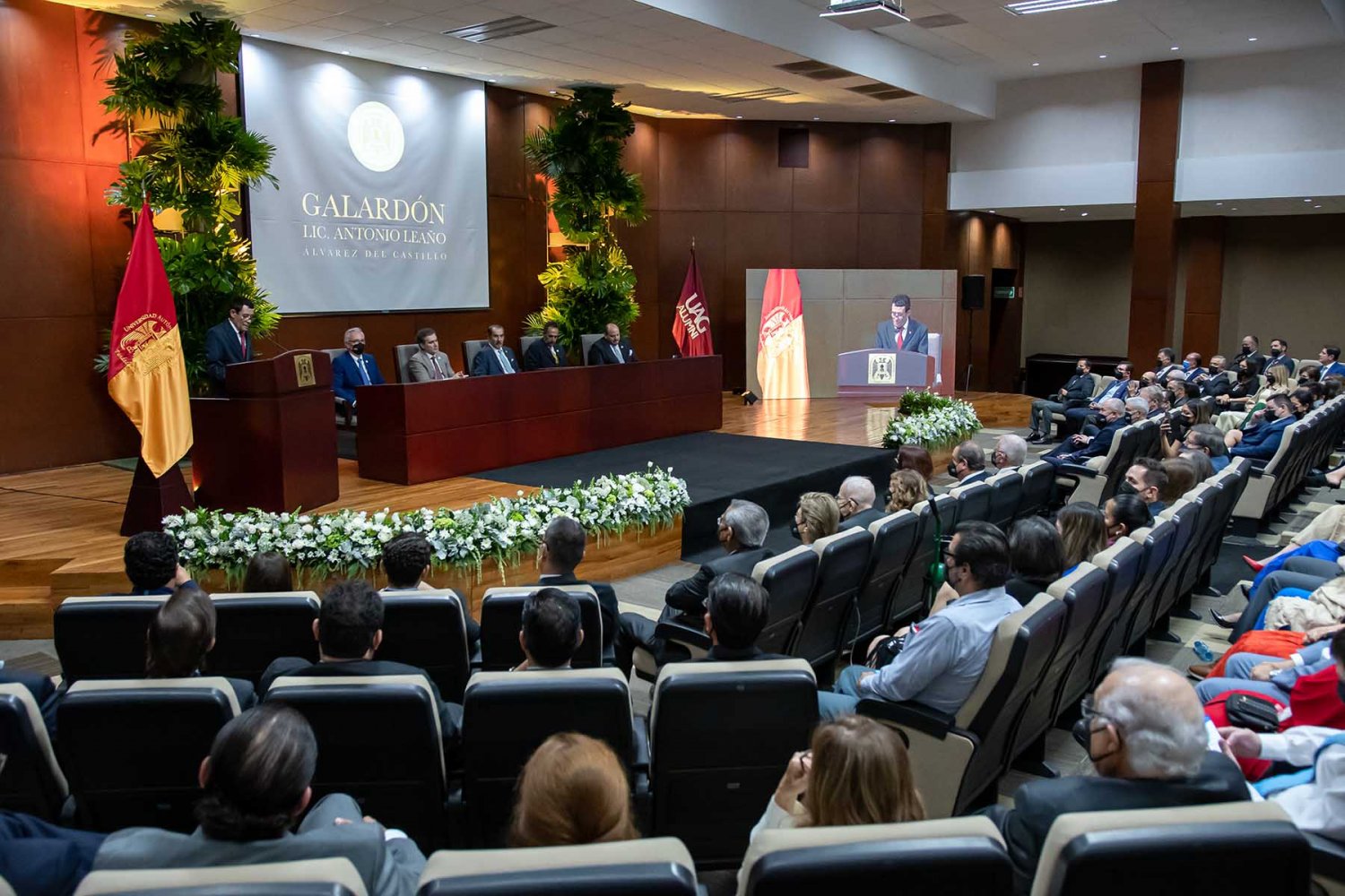 “El Galardón Lic. Antonio Leaño Álvarez del Castillo es el más alto reconocimiento que un egresado autónomo puede recibir; lleva el nombre de uno de nuestros fundadores, quien destacó en toda su vida por sus grandes méritos y capacidades, pero, sobre todo, por sus grandes cualidades y virtudes como ser humano”, afirmó el Rector.