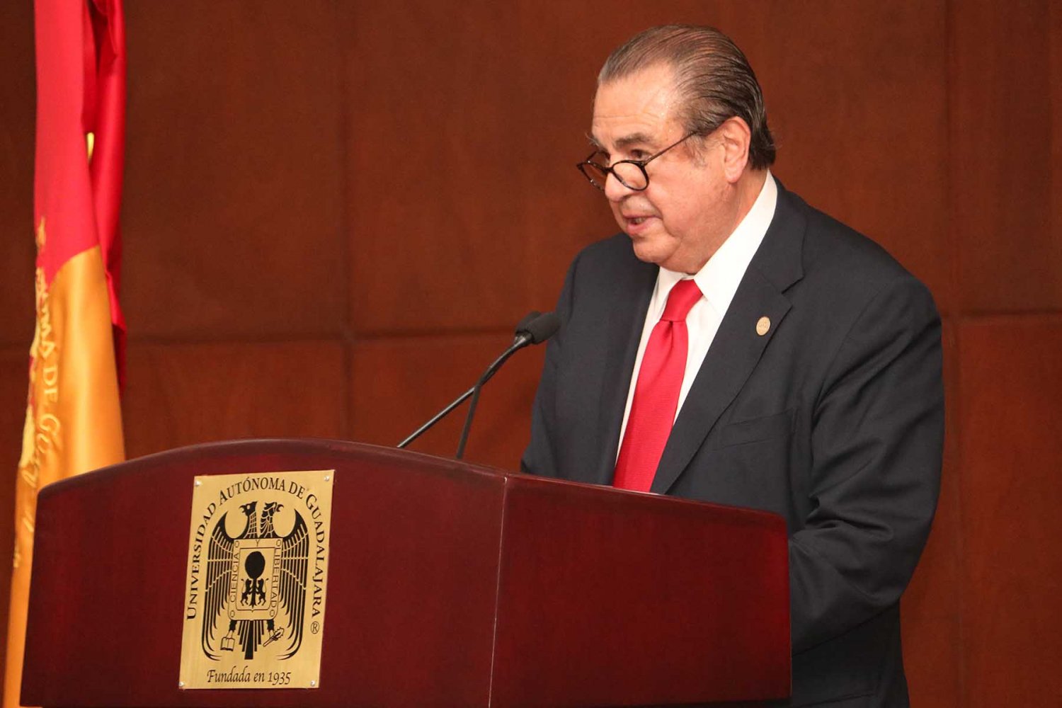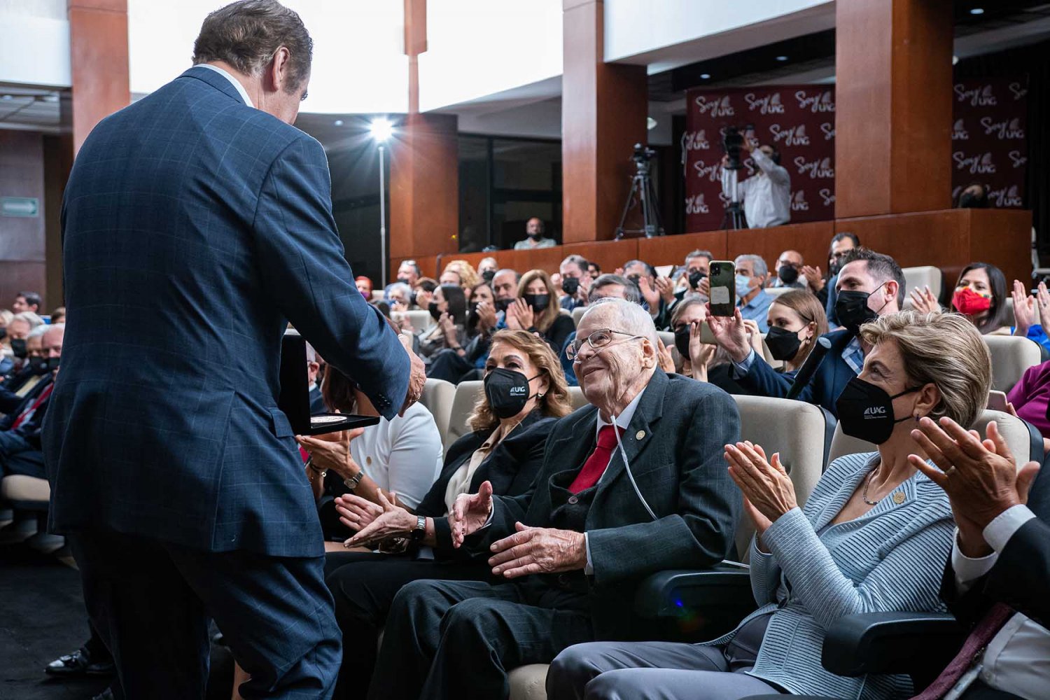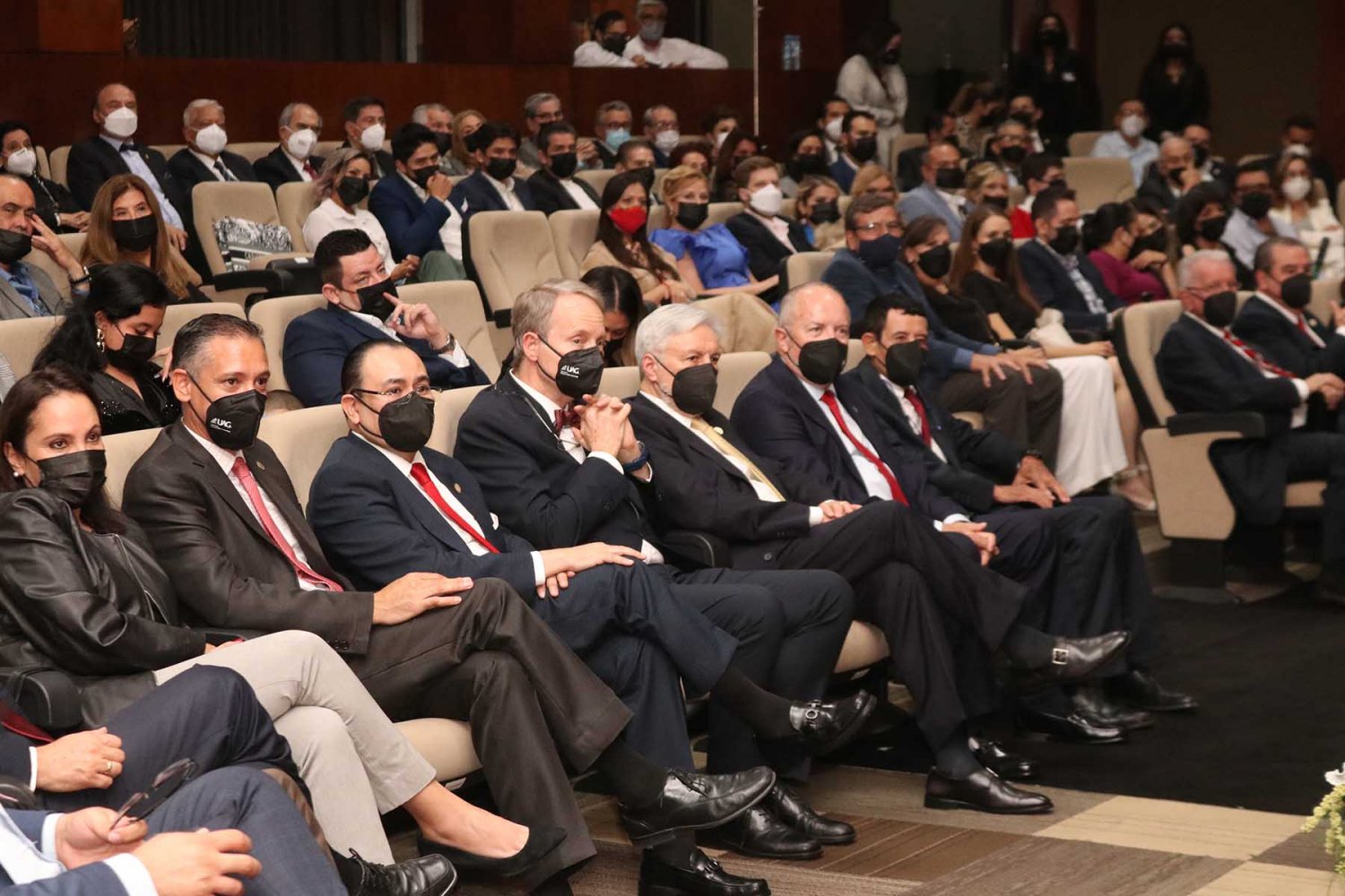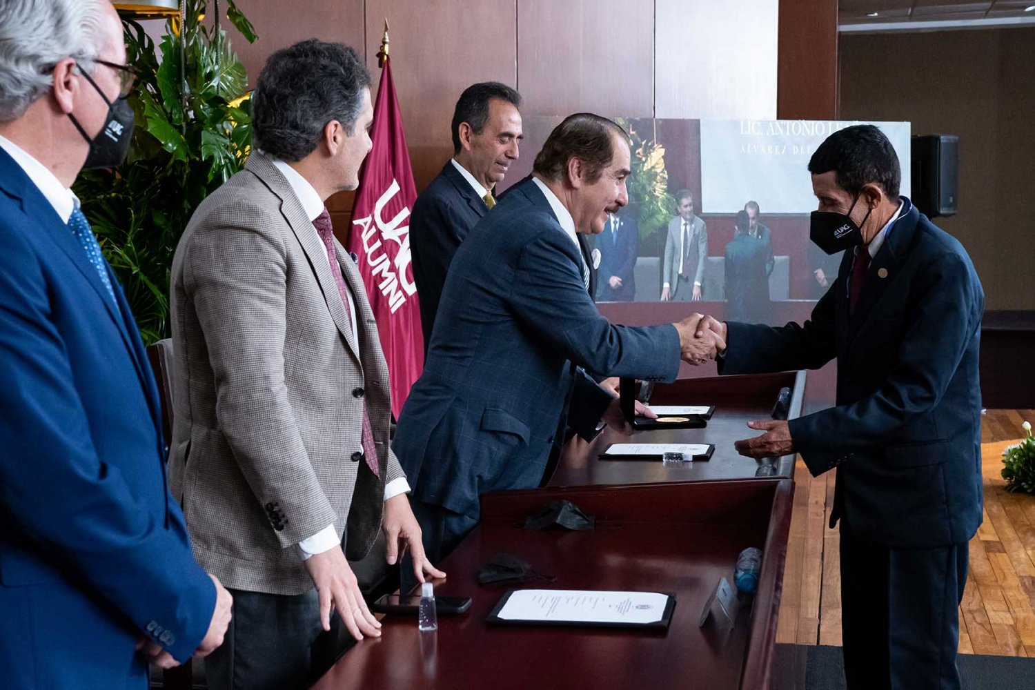 En la ceremonia también estuvieron presentes el Lic. Antonio Leaño del Castillo, Vicerrector General; Dr. Hugo de la Rosa Peñaloza, Vicerrector Académico; Dr. Alfonso Petersen Farah, Vicerrector de Ciencias de la Salud; y el Mtro. Ariosto Manrique Moreno, Presidente Nacional de la Asociación de Egresados.