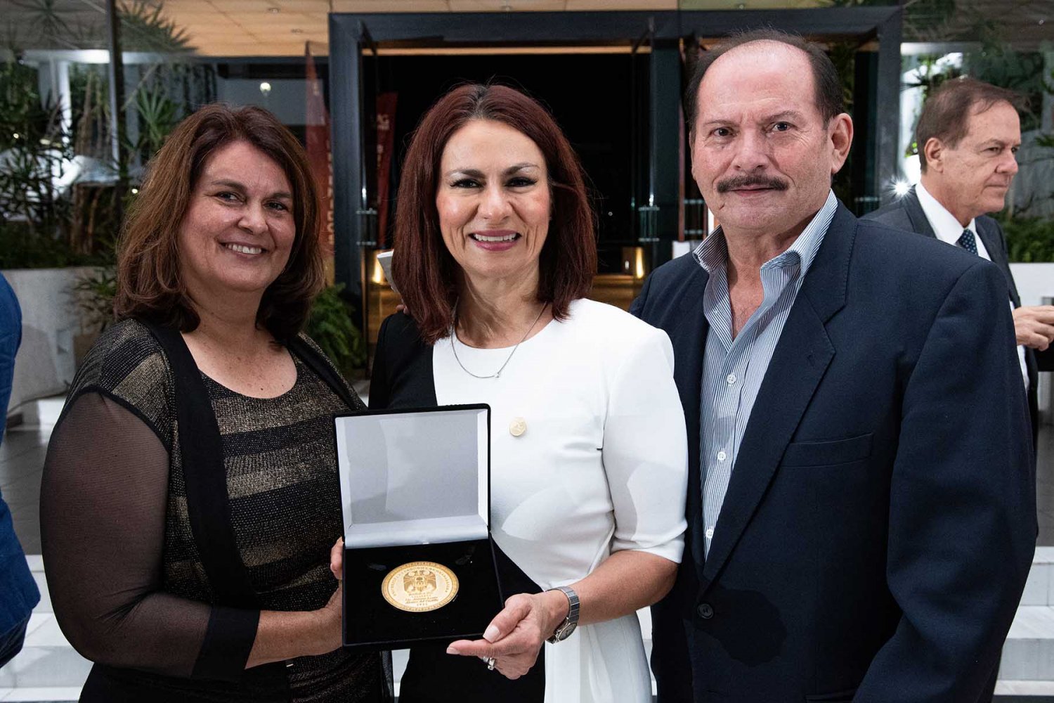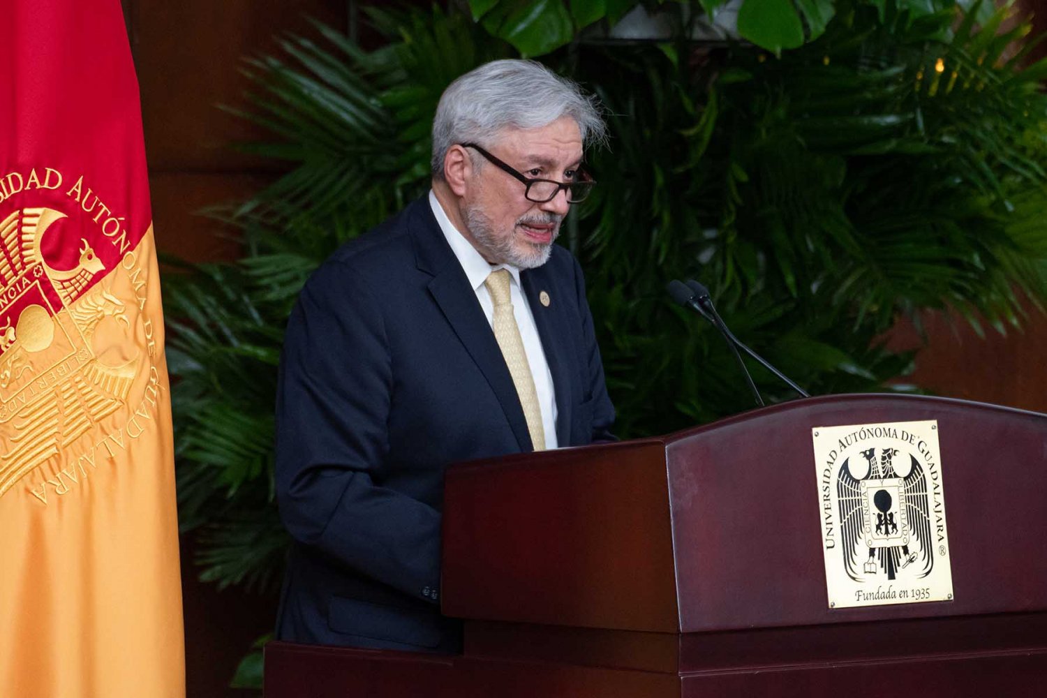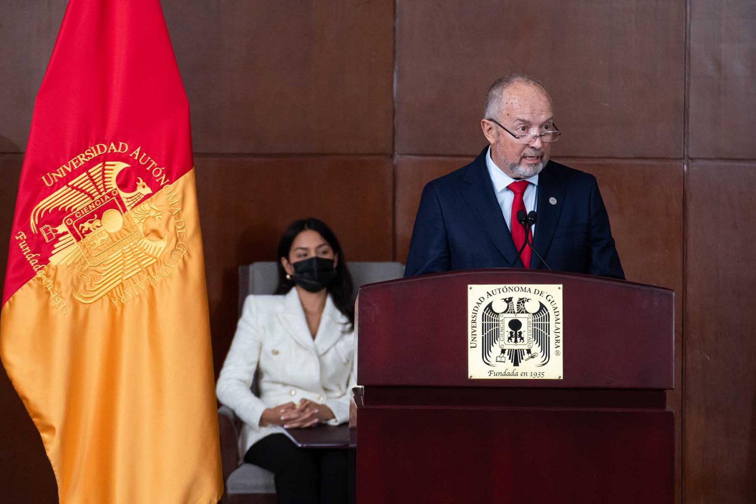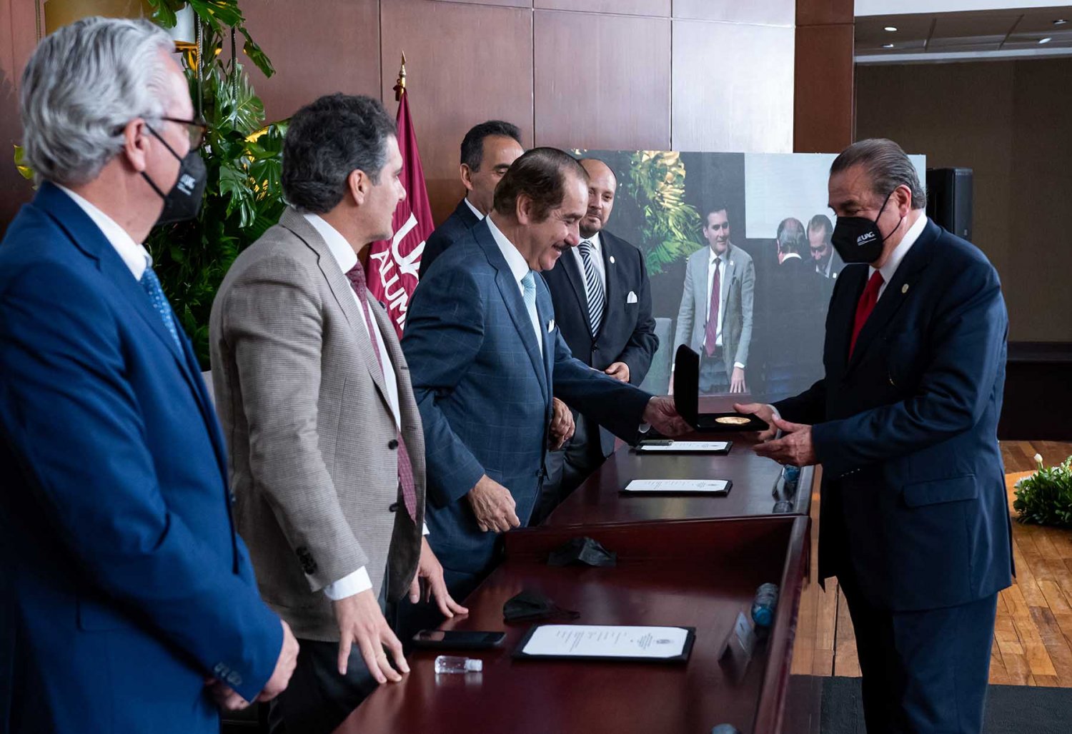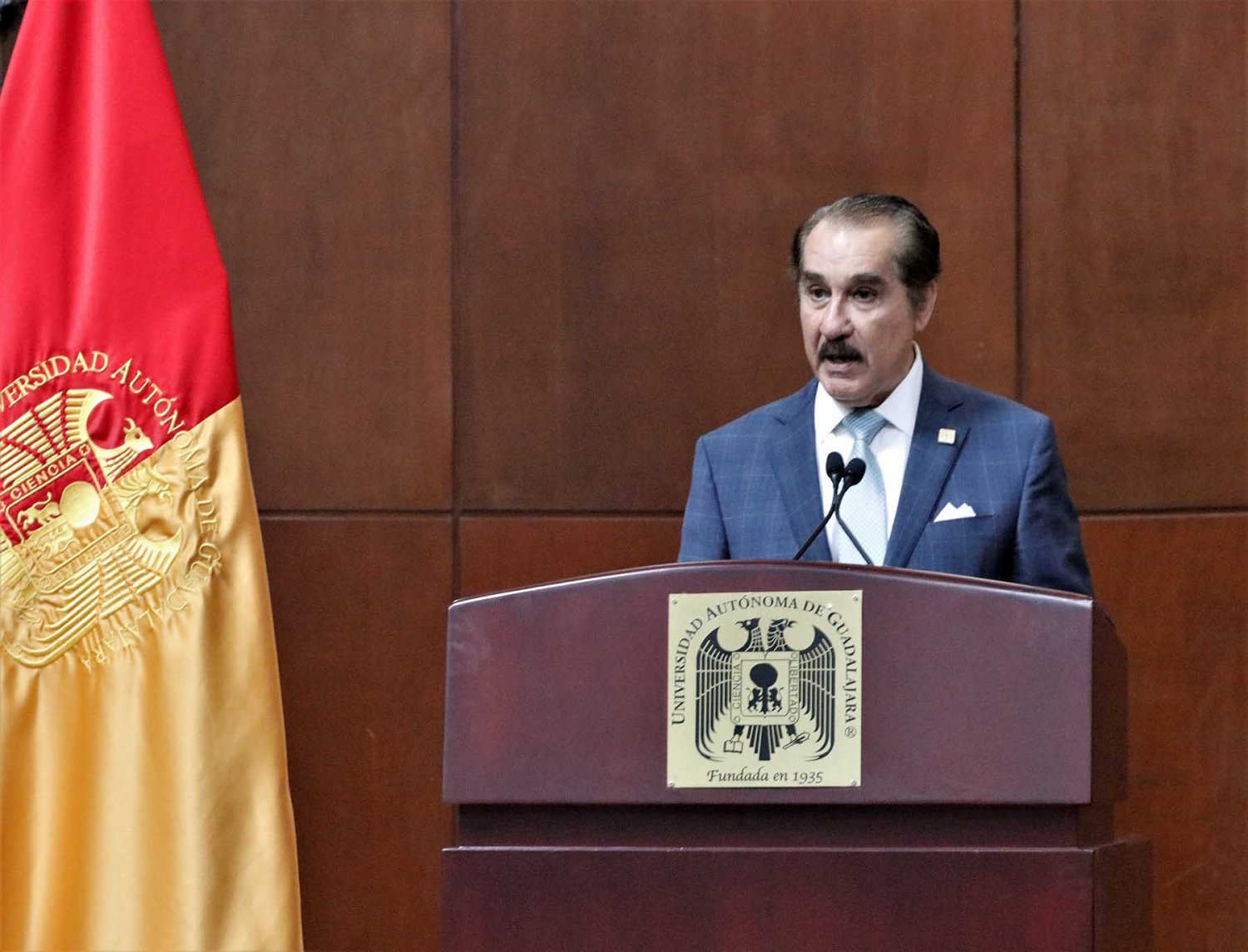 En la ceremonia también estuvieron presentes el Lic. Antonio Leaño del Castillo, Vicerrector General; Dr. Hugo de la Rosa Peñaloza, Vicerrector Académico; Dr. Alfonso Petersen Farah, Vicerrector de Ciencias de la Salud; y el Mtro. Ariosto Manrique Moreno, Presidente Nacional de la Asociación de Egresados.
