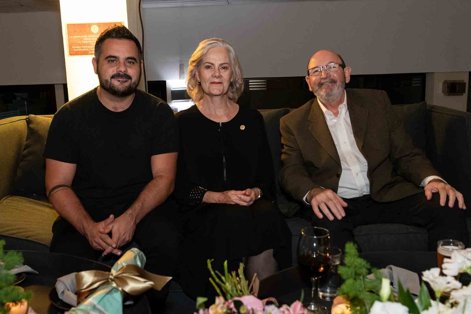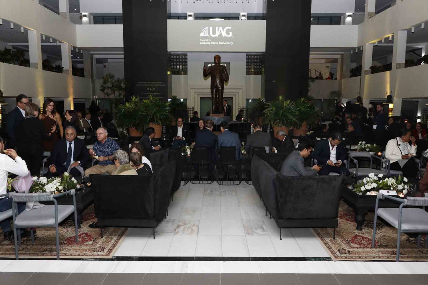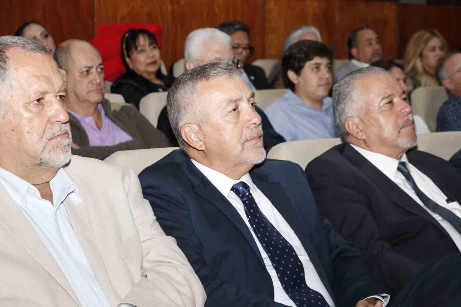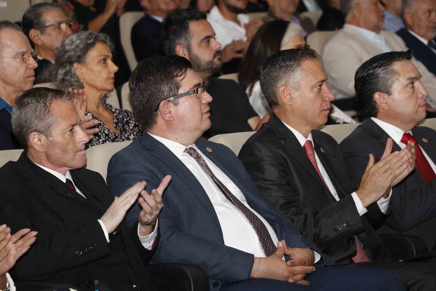 En el presídium estuvieron el Rector, Lic. Antonio Leaño Reyes; Vicerrector General, Lic. Antonio Leaño del Castillo; Vicerrector Académico Emérito, Dr. Néstor Velasco Pérez; Secretario General, Dr. Ricardo Beltrán Rojas; y el Presidente Nacional de la Asociación de Egresados UAG, Mtro. Ariosto Manrique Moreno.