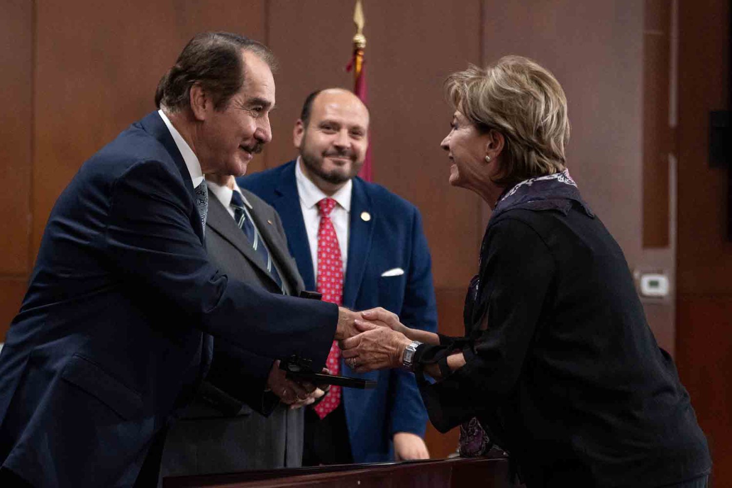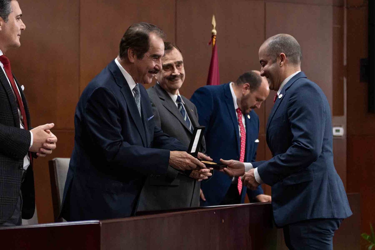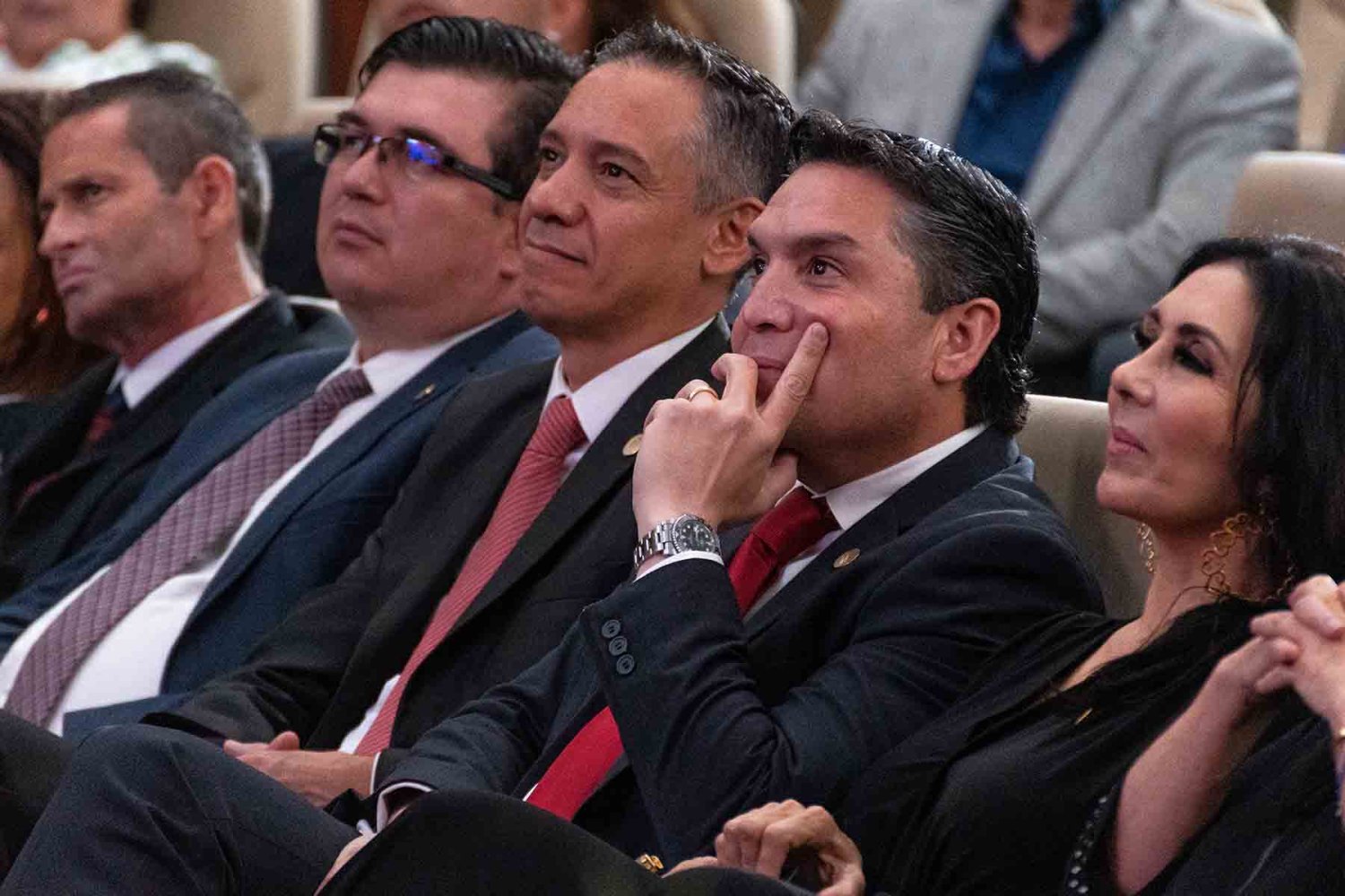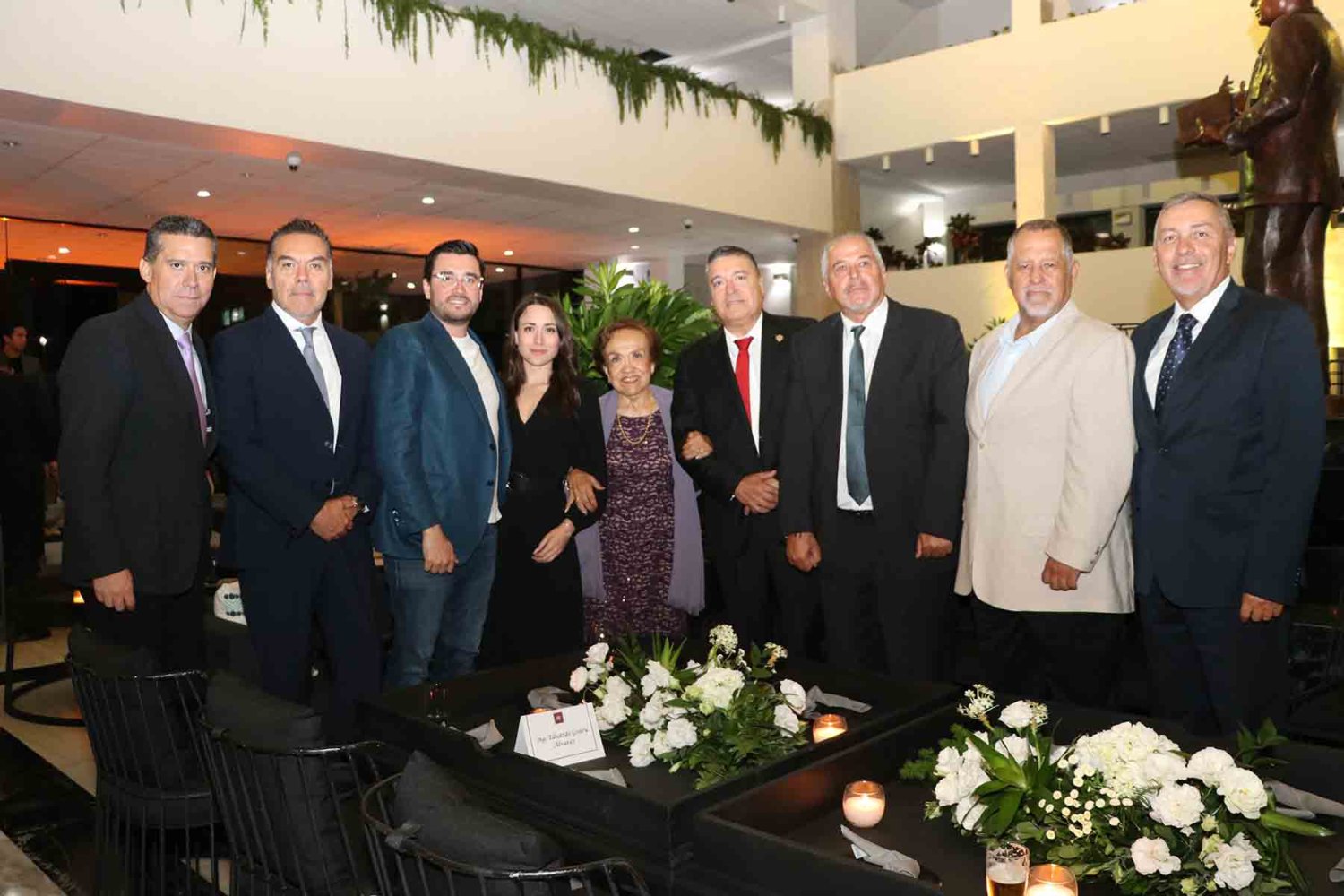 En el presídium estuvieron el Rector, Lic. Antonio Leaño Reyes; Vicerrector General, Lic. Antonio Leaño del Castillo; Vicerrector Académico Emérito, Dr. Néstor Velasco Pérez; Secretario General, Dr. Ricardo Beltrán Rojas; y el Presidente Nacional de la Asociación de Egresados UAG, Mtro. Ariosto Manrique Moreno.