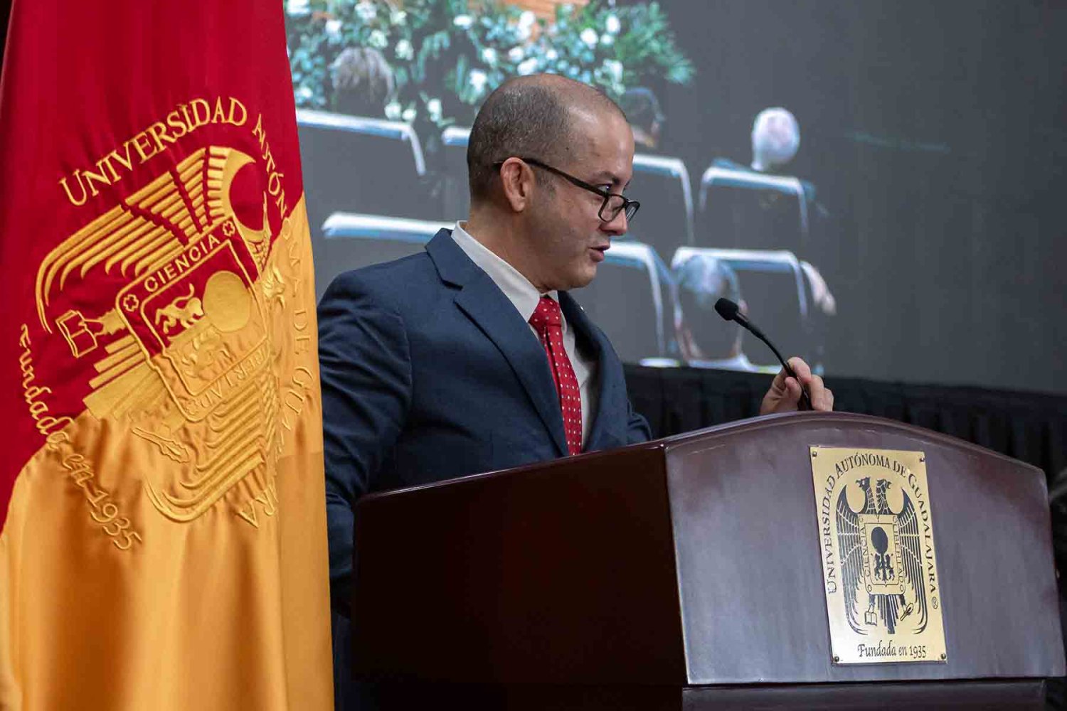 Durante este acto, el Vicerrector General, Lic. Antonio Leaño del Castillo, dio la bienvenida a los homenajeados y aseguró que los egresados son “una evidencia viva” del impacto que produce la UAG en la sociedad.