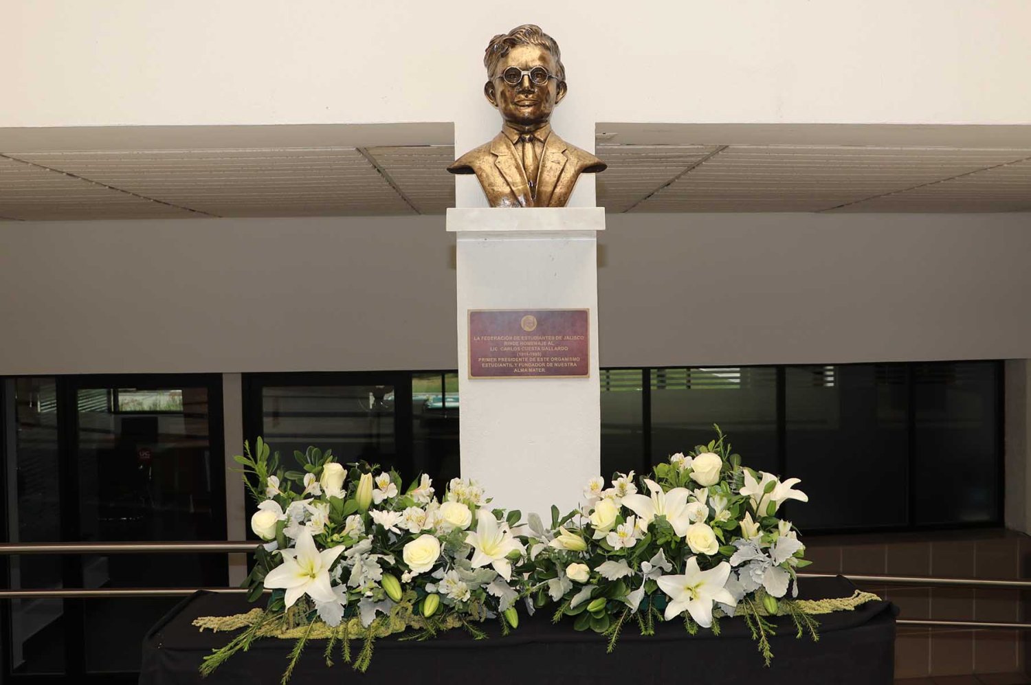 “Hoy, celebramos el trigésimo octavo aniversario luctuoso del Licenciado Carlos Cuesta Gallardo, cofundador de nuestra Universidad y primer Presidente de la Federación de Estudiantes de Jalisco”.