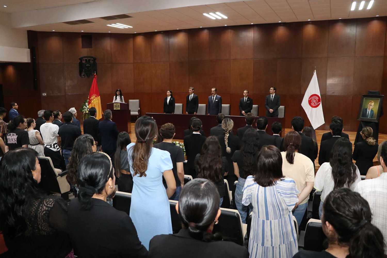 Este acto tuvo como punto de reunión el Auditorio Luis Garibay, en Ciudad Universitaria, en donde asistieron el Lic. Antonio Leaño del Castillo, Vicerrector General de la UAG; el Dr. Hugo de Rosa Peñaloza, Vicerrector Académico; el Dr. Alfonso Petersen Farah, Vicerrector de Ciencias de la Salud; el Dr. Néstor Velasco Pérez, Vicerrector Académico Emérito; y el Dr. Ricardo Beltrán Rojas, Secretario General; así como Decanos, Directores, funcionarios, Comité de la FEJ y alumnos.