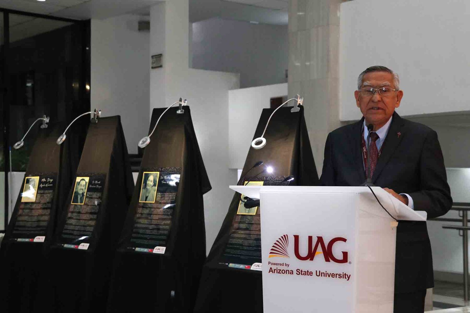 En la ceremonia oficial, el Dr. Ricardo Beltrán Rojas, Secretario General de la UAG y en representación de las autoridades universitarias, recordó el legado de cada uno de los personajes.