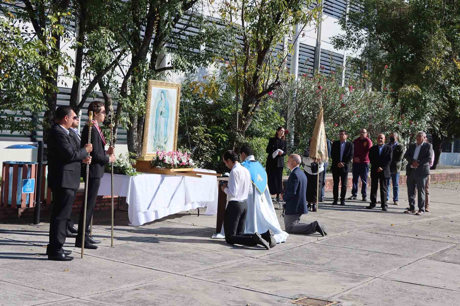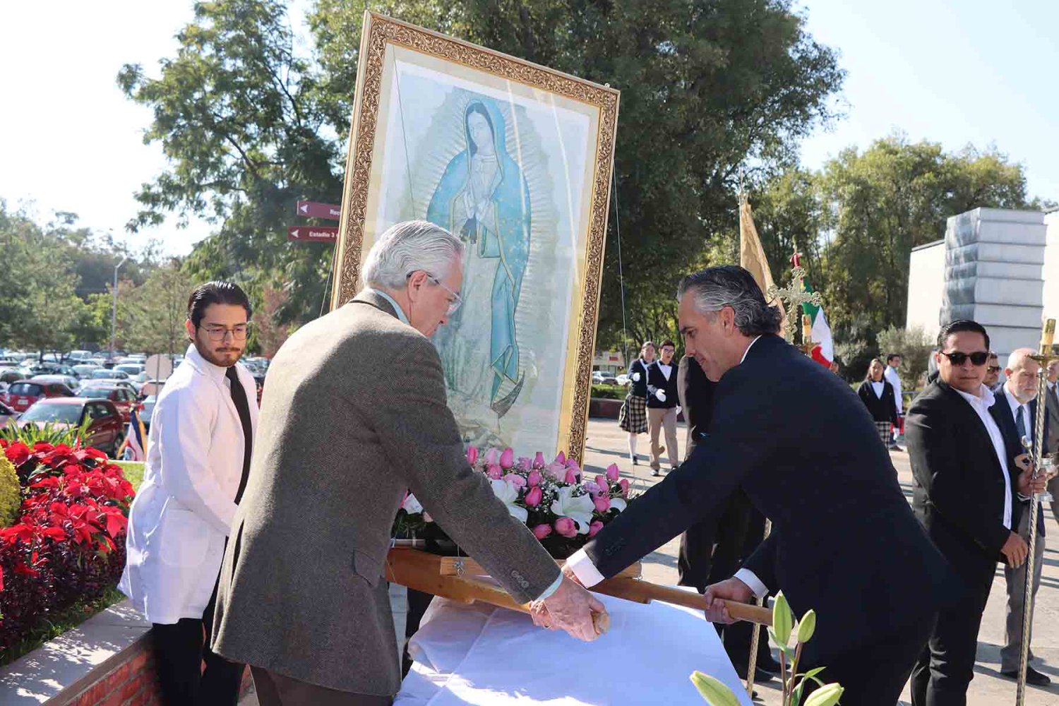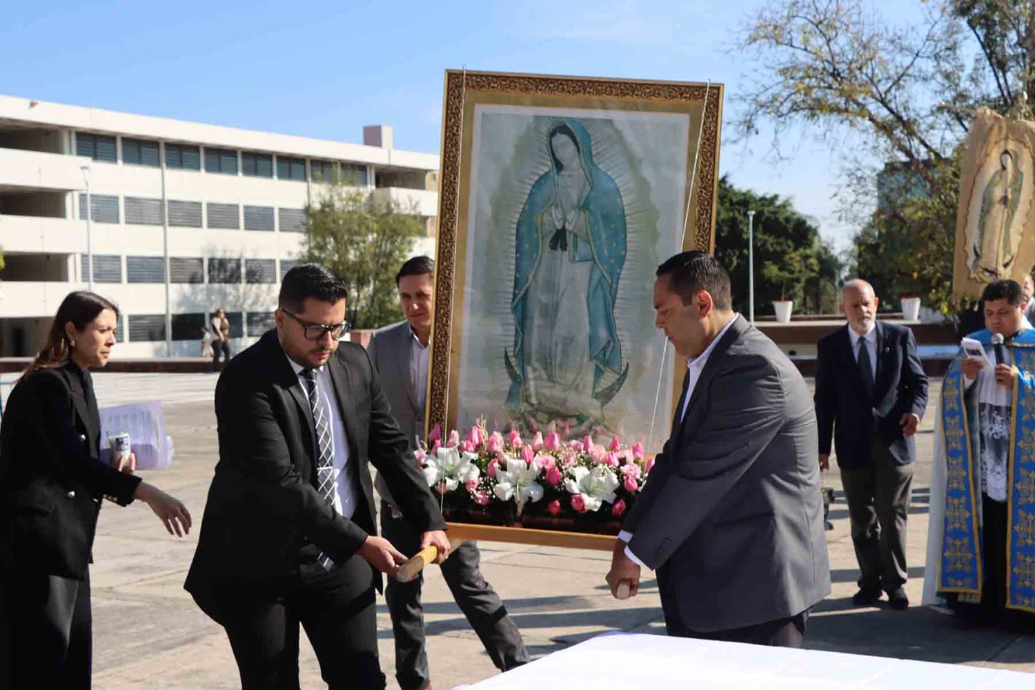 Durante el acto, el Rector ofreció simbólicamente a la Santísima Virgen de Guadalupe las llaves de la Universidad, proclamándola reina soberana y madre de la institución.