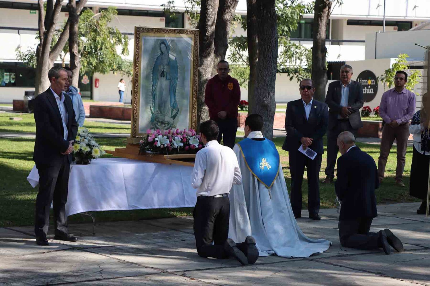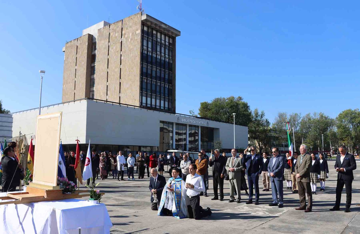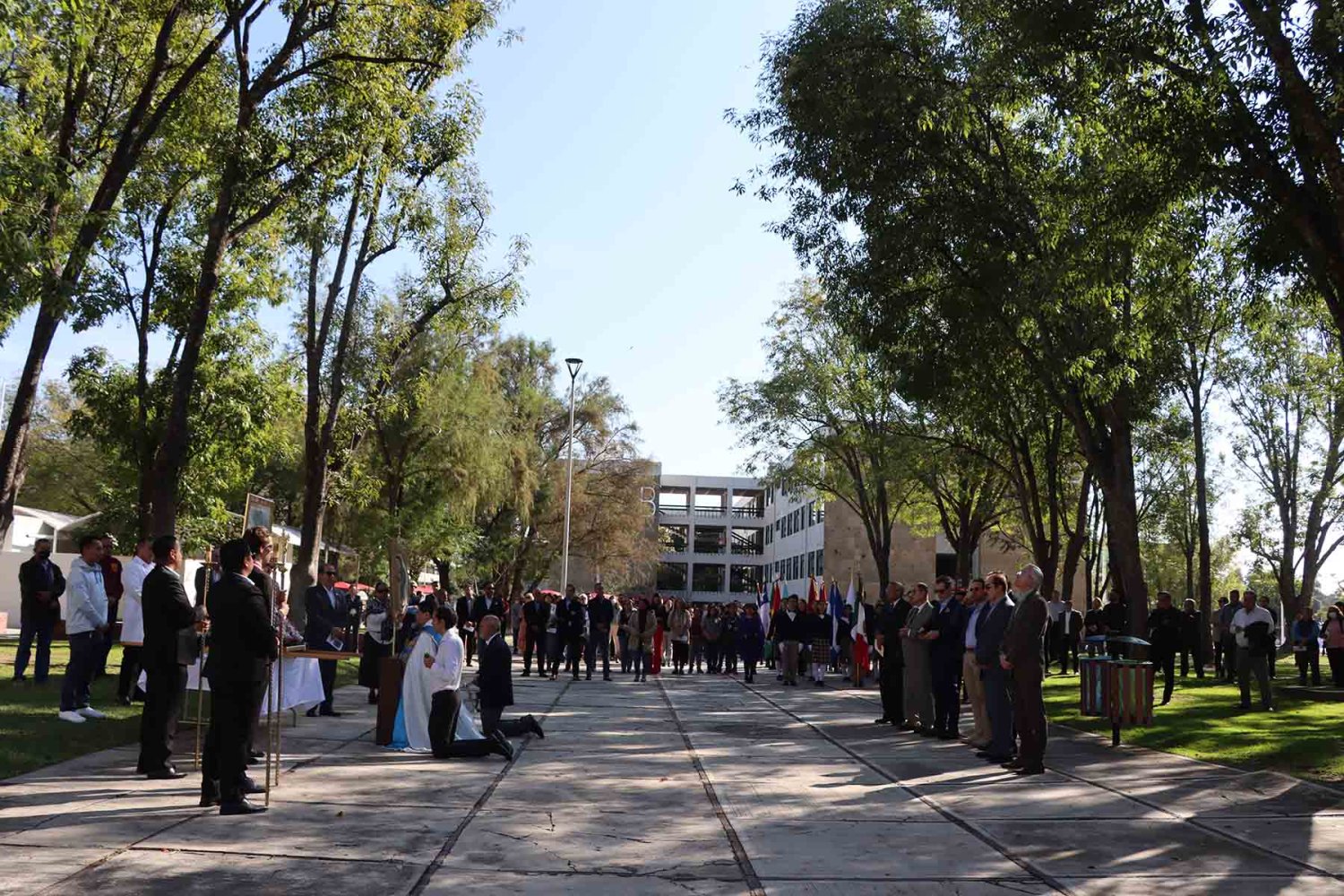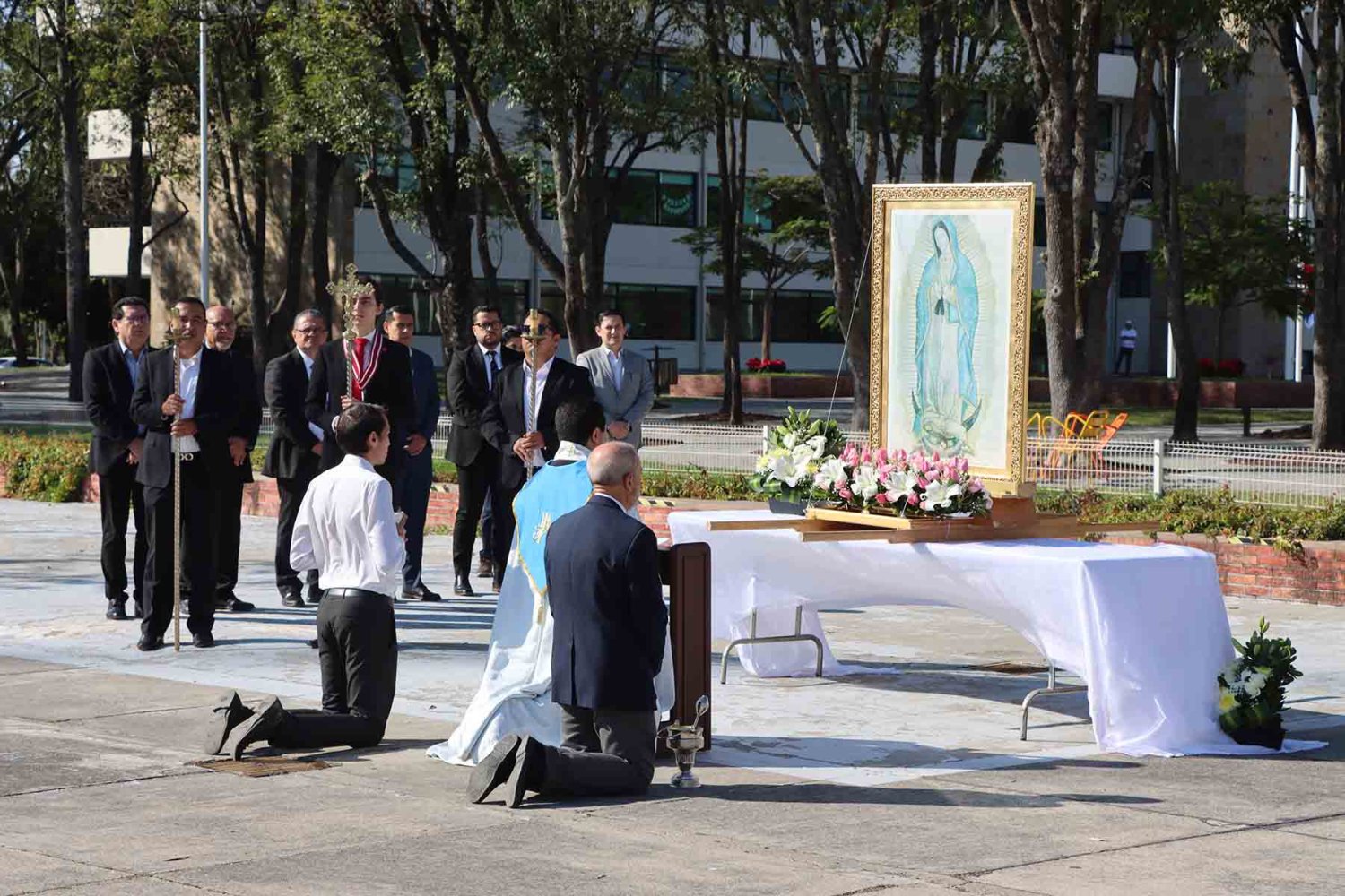 Durante el acto, el Rector ofreció simbólicamente a la Santísima Virgen de Guadalupe las llaves de la Universidad, proclamándola reina soberana y madre de la institución.