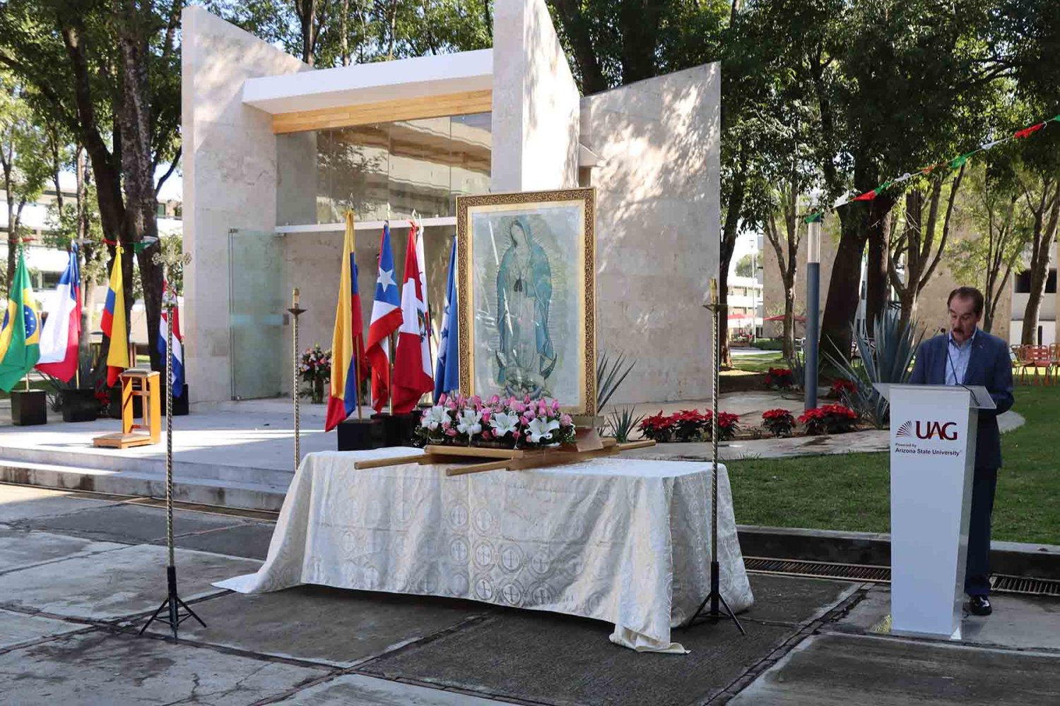 Con motivo del 494 aniversario de sus apariciones, la Universidad Autónoma de Guadalajara (UAG) llevó a cabo la Renovación de la Consagración a la Santísima Virgen de Guadalupe.