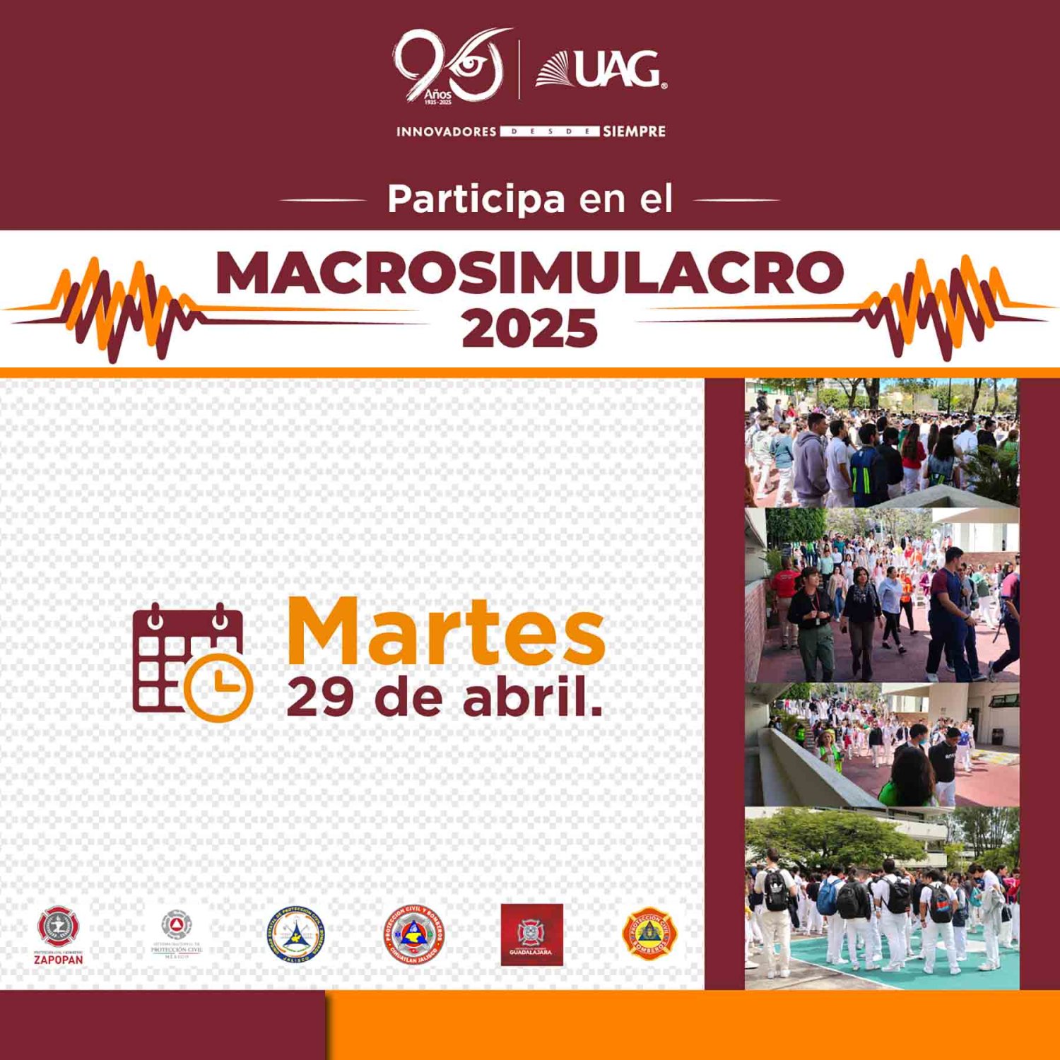 La Universidad Autónoma de Guadalajara (UAG) participó en el Macrosimulacro Nacional 2025, como parte del fomento a las medidas de prevención y protección parara la comunidad universitaria y visitantes.