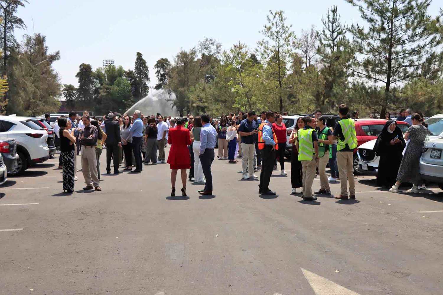 En punto de las 11:30 horas sonaron las alarmas de los edificios y las brigadas de protección civil fueron las encargadas de organizar la evacuación.