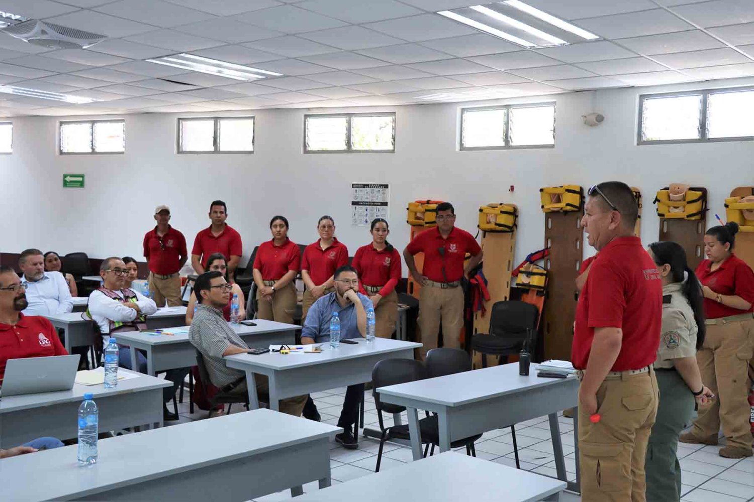 Por otro lado, las instalaciones cuentan con señalética, puntos de reunión ante la presentación de un desastre natural; además, que los edificios están equipados con instrumentos para la atención de emergencias, como camillas y equipos para reanimación cardiopulmonar.