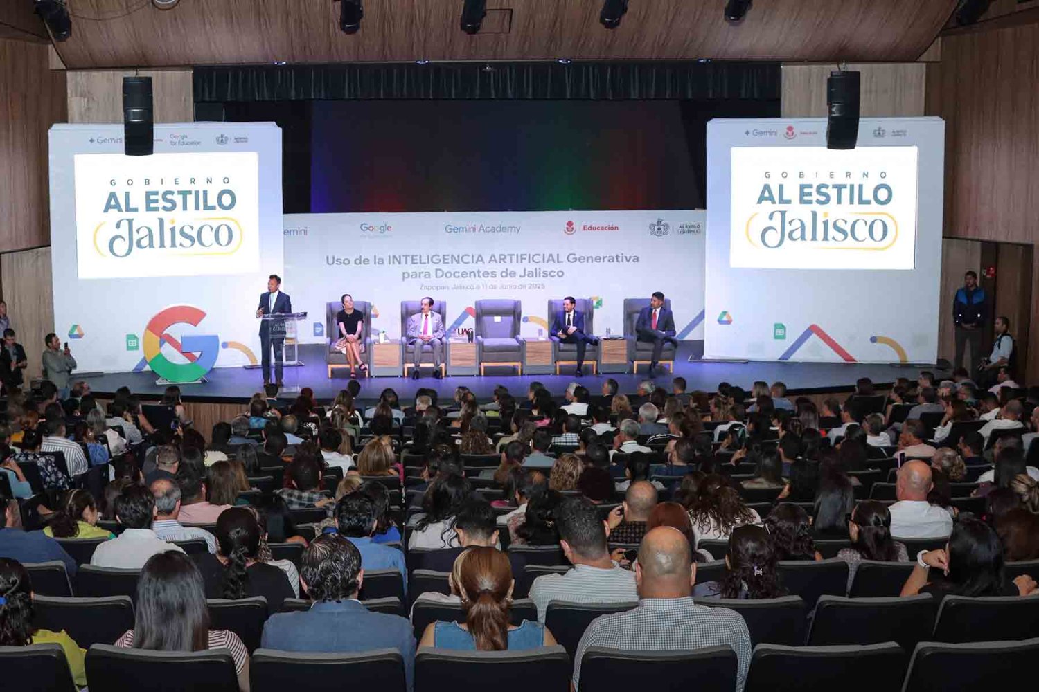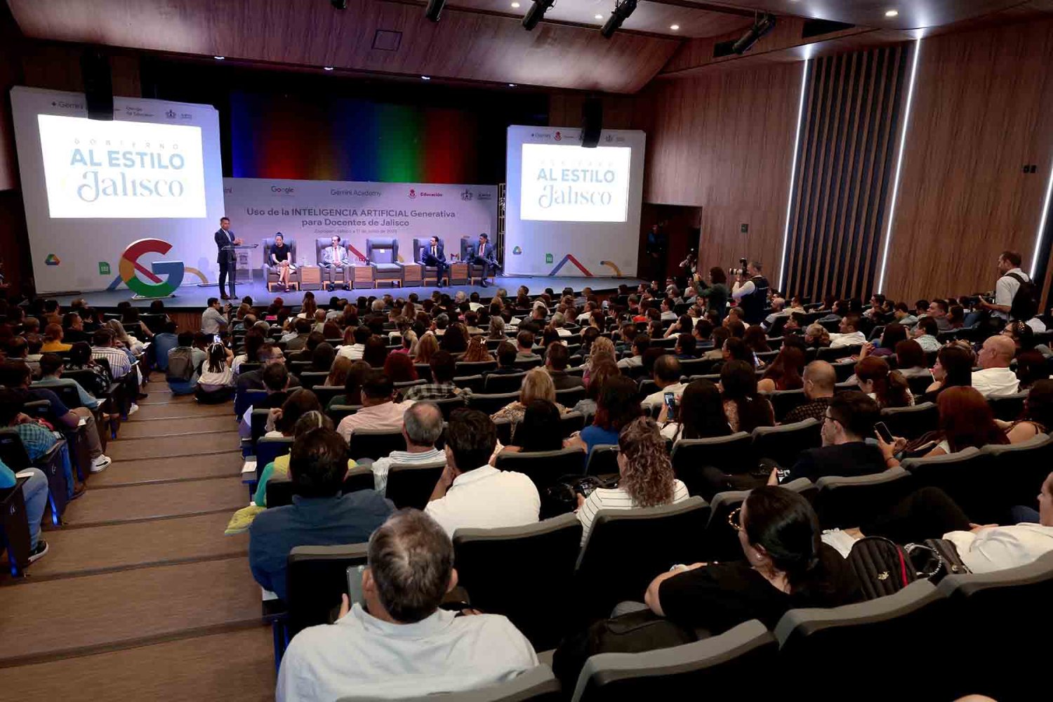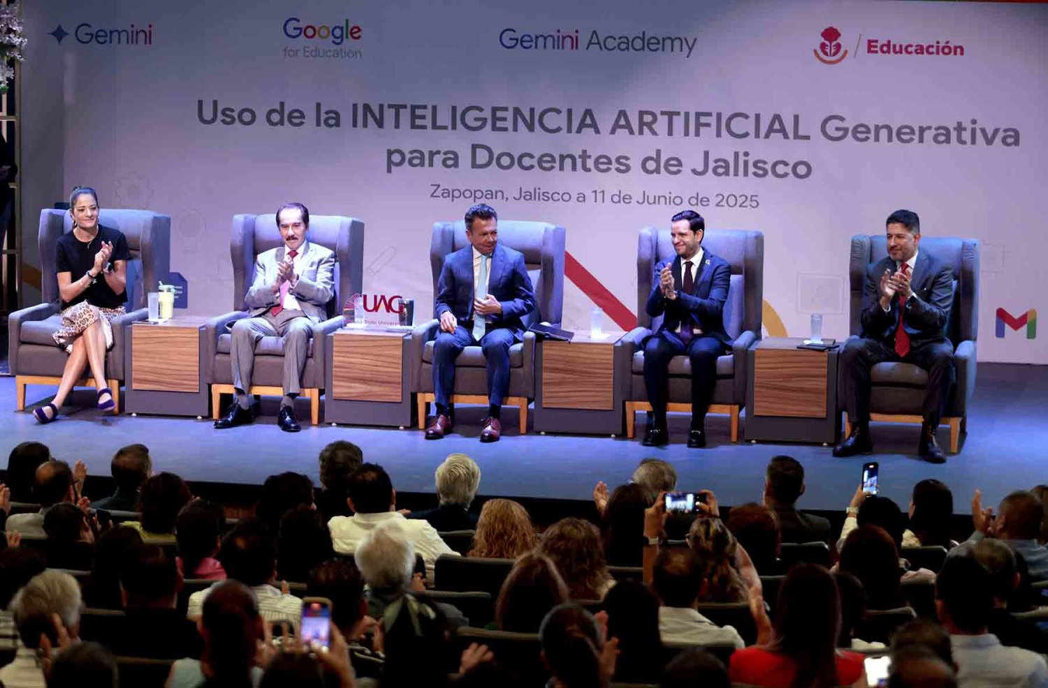 Asimismo, destacó que el objetivo es capacitar al 100 por ciento de los 80 mil docentes de Jalisco, mediante un esfuerzo coordinado entre instituciones públicas y privadas, así como con el apoyo del equipo de Google y otras secretarías del gobierno estatal.