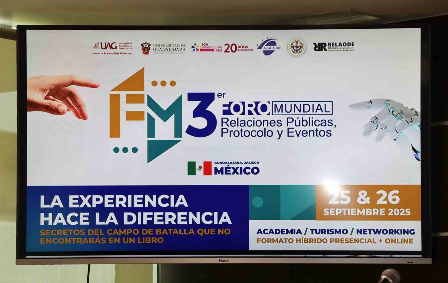 La Universidad Autónoma de Guadalajara (UAG) será la sede del “3er Foro Mundial de Relaciones Públicas, Protocolo y Eventos”, una reunión que convocará a profesionales de más de 21 países y representantes de diversos estados de México. El evento se desarrollará en formato híbrido (presencial y en línea) durante los días 25 y 26 de septiembre de 2025.