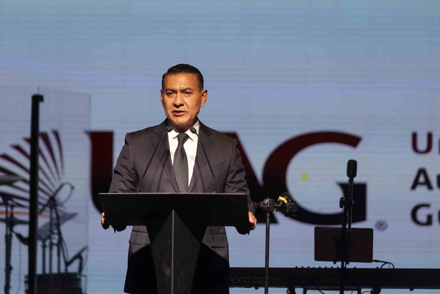 El destacado egresado agregó que hoy se celebra con orgullo la historia de la UAG y se renueva el compromiso con un futuro lleno de innovación y excelencia.