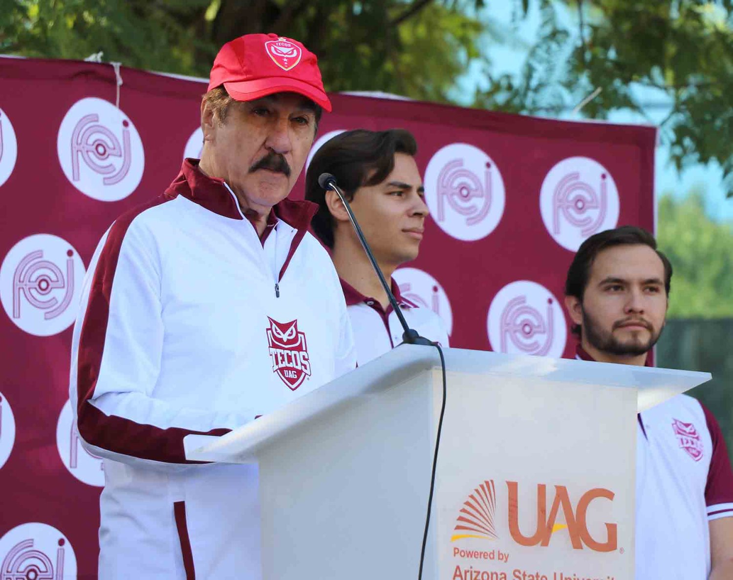 Luego de estas palabras, el Dr. Alfonso Petersen Farah, Vicerrector Académico y de Ciencias de la Salud de la institución, tomó la protesta deportiva a Ramón Hernández Quiroz, Secretario de Deportes de la FEJ.