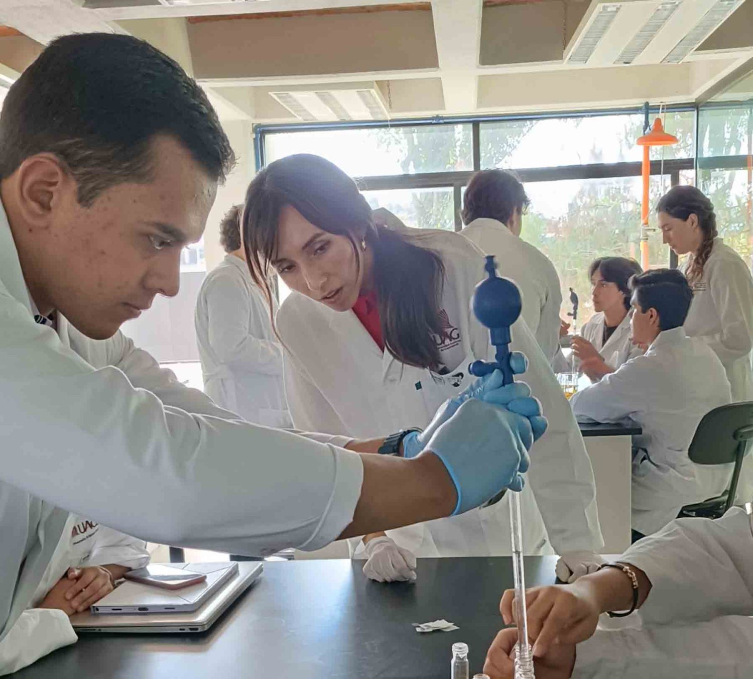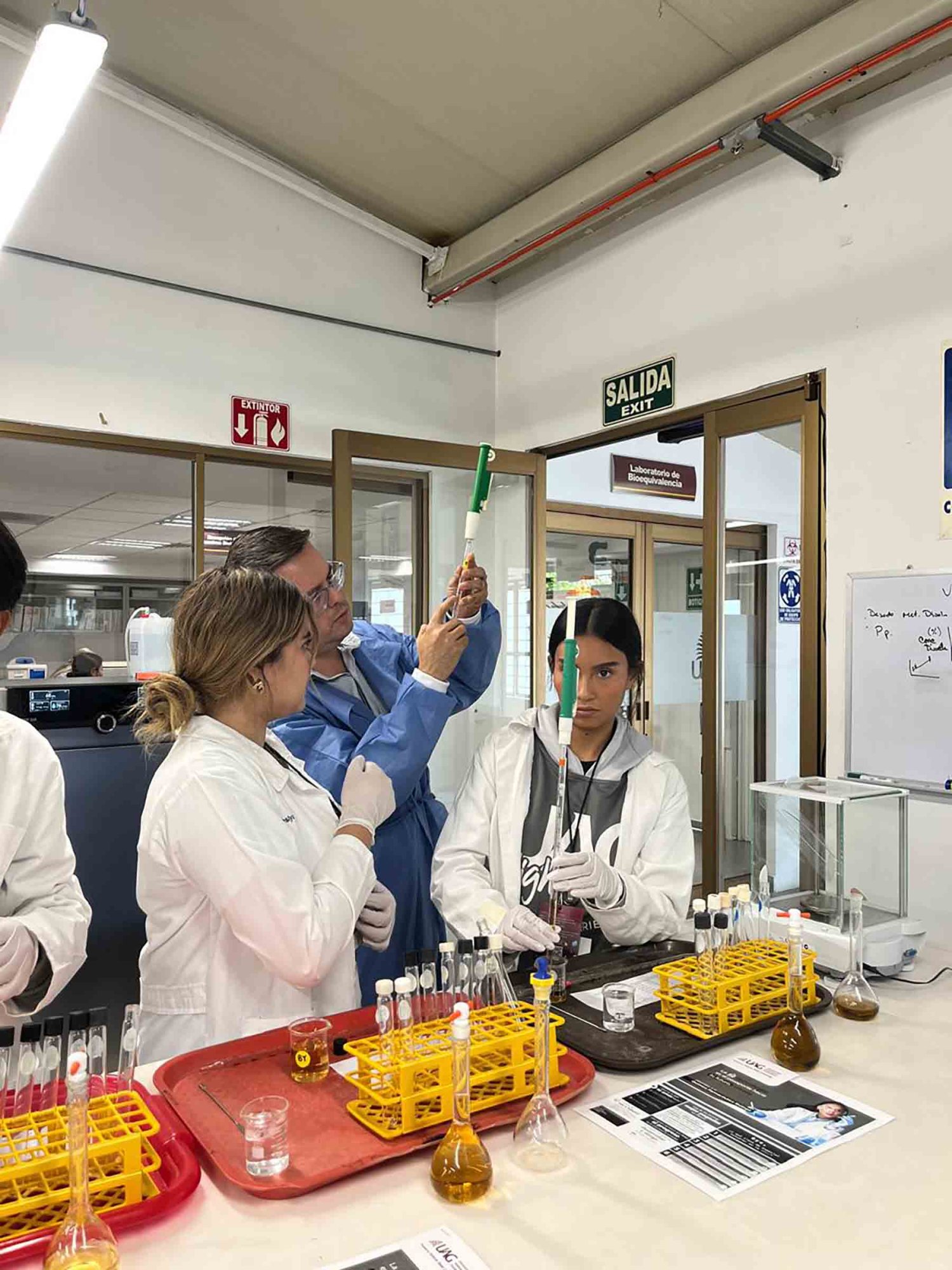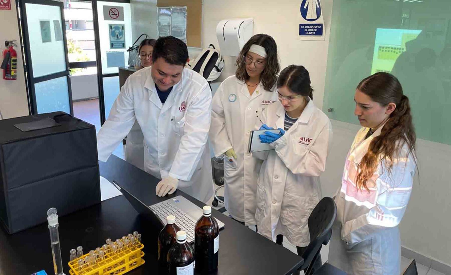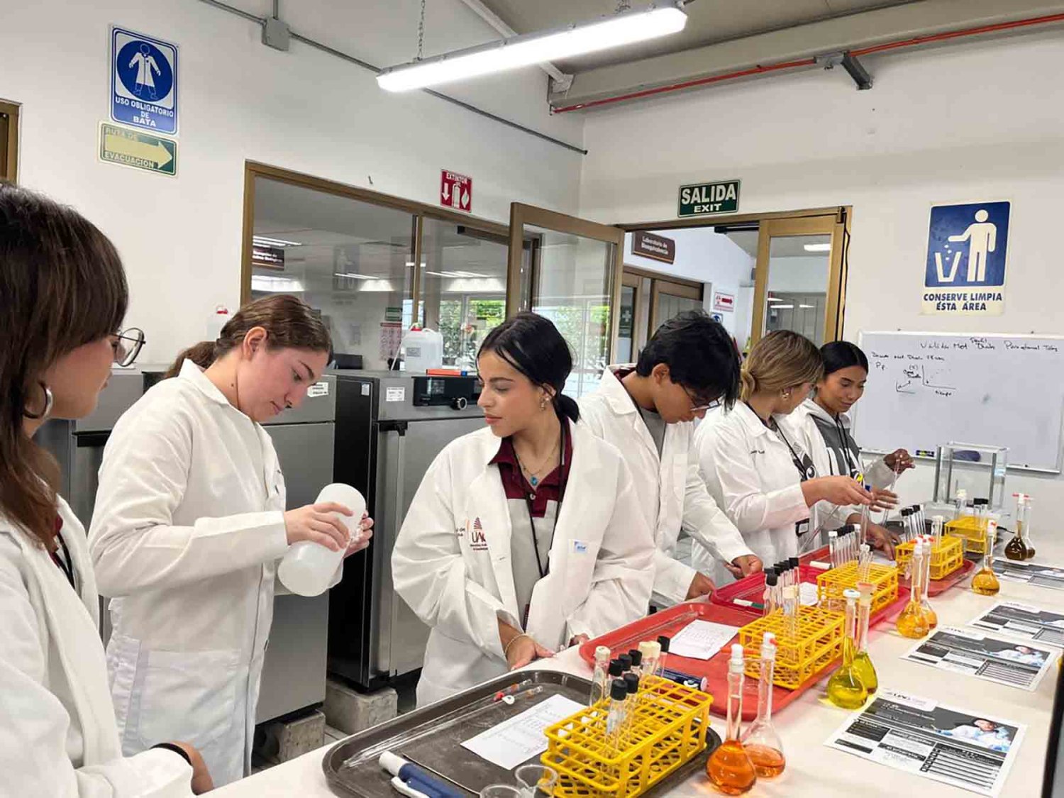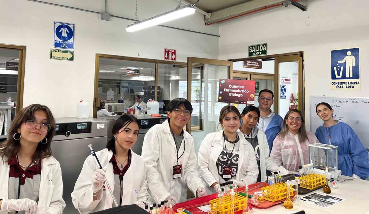 El siguiente paso fue integrar la tecnología en los programas de Ciencias Químicas a través de la asignatura “Introducción al Laboratorio” (periodo 2024-B, programas de Ingeniería en biotecnología, alimentos y Licenciatura en Químico Farmacobiólogo). La aplicación estuvo a cargo de la Dra. Ana Itzel Zárate Guzmán con el apoyo de su grupo de trabajo integrado por Arantza Villa González, Camila Soé Gómez Navarro, Erich Máximo Alemán Luna y Carlos David Patiño Arévalo, estudiantes de décimo cuatrimestre de Ingeniería Química.