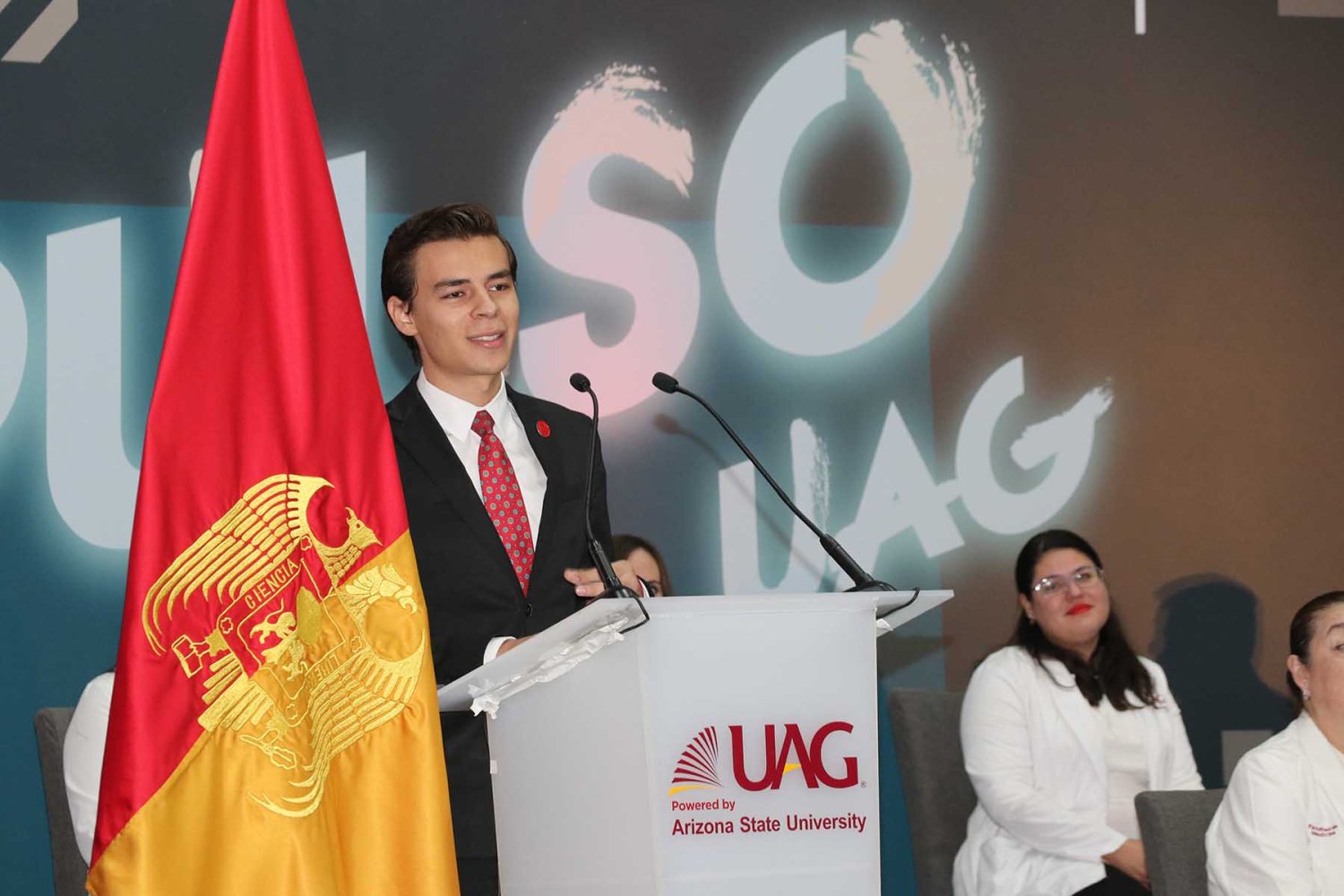 El Dr. Alfonso Petersen Farah, Vicerrector Académico de la UAG, habló del compromiso universitario que no solo abarca ser buenos estudiantes, sino también buenas personas con valores, ya que quienes deciden dedicarse al área de la salud necesitan de profesionalismo integral al servicio de los demás.