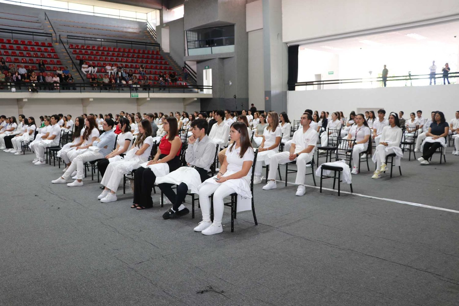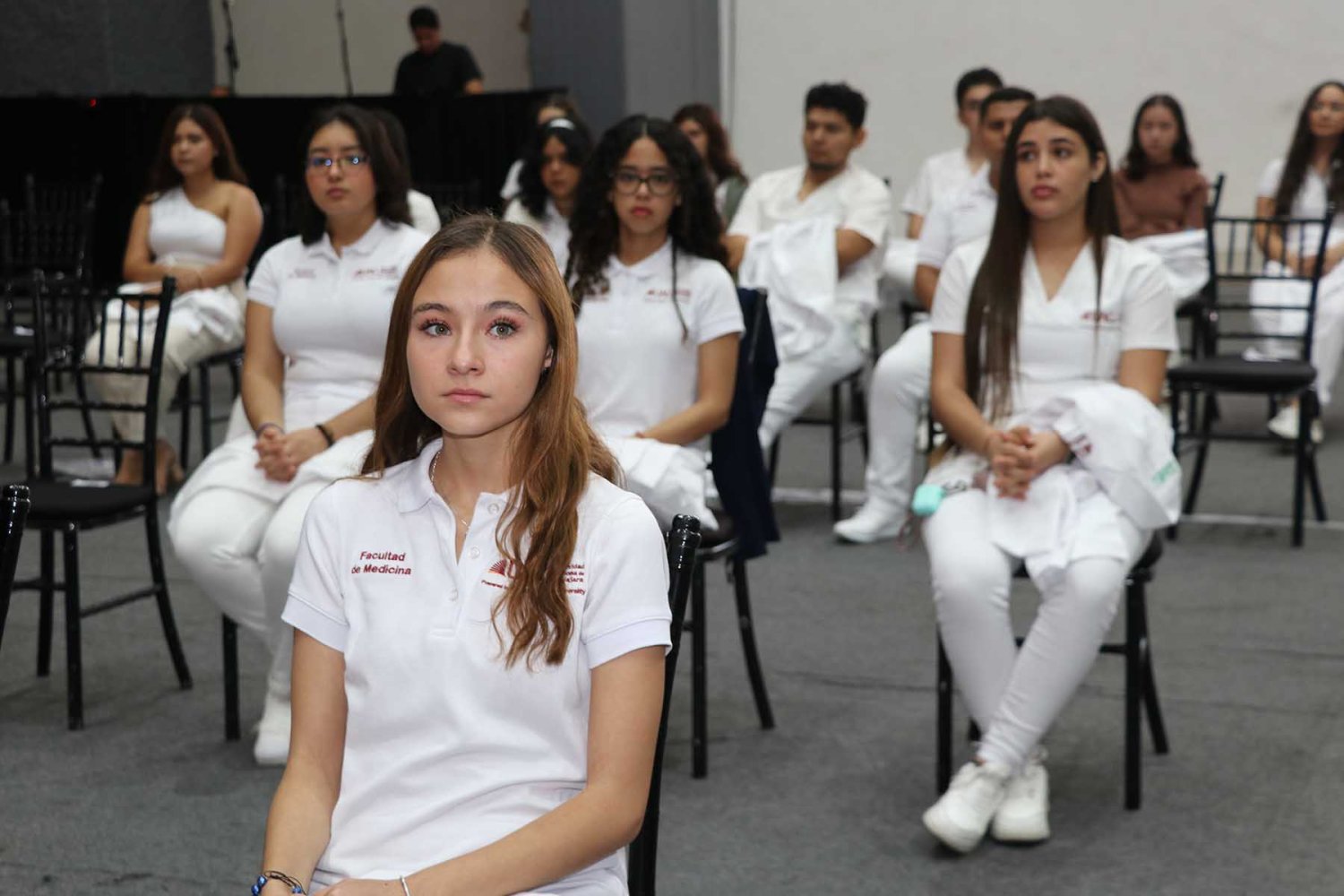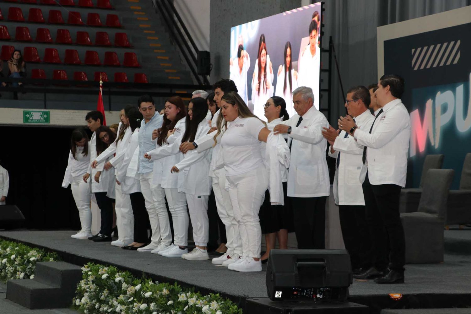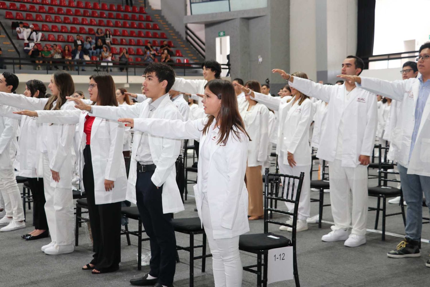 Después, cada uno de los alumnos del programa de Medicina UAG fueron mencionados por su nombre para pasar al frente del estrado, donde las autoridades universitarias correspondientes les colocaran su primera bata blanca.