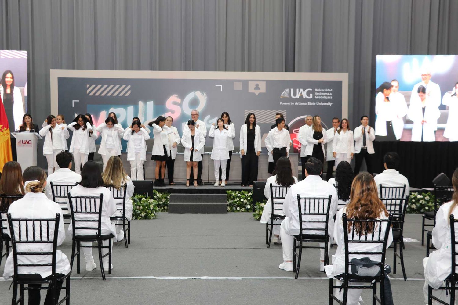 Decenas de futuros médicos eligieron a la Universidad Autónoma de Guadalajara (UAG) como su nueva casa de estudios universitarios, por lo que a través de la ceremonia de bienvenida “Impulso UAG”, se les colocó su primera bata blanca, uno de los símbolos más importantes de esta noble profesión.