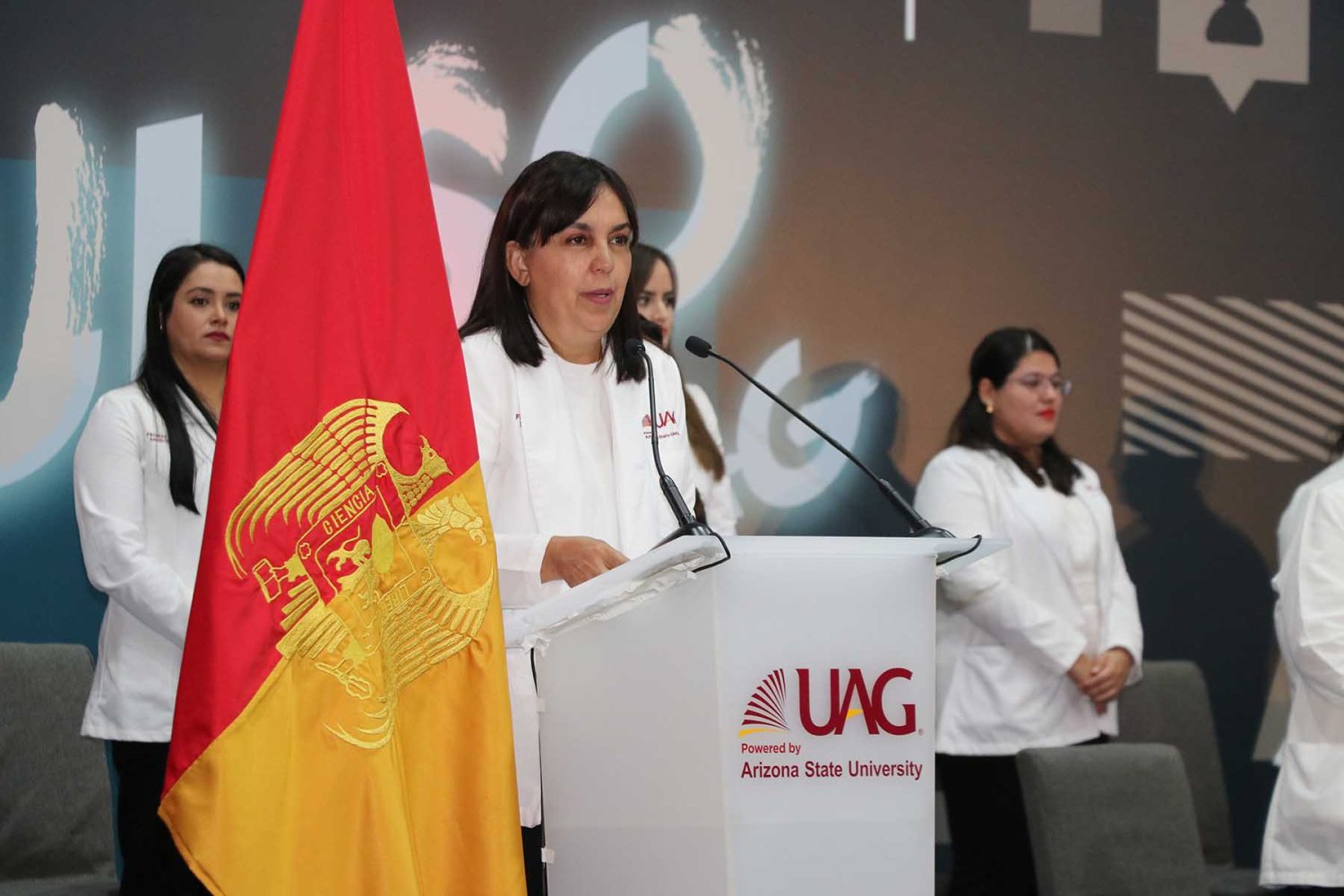 “Hoy les vamos a imponer la bata blanca porque ustedes hoy inician la formación del profesional del acercamiento con el paciente que genera esa puerta de apertura… Bienvenidos queridos médicos a la Facultad de Medicina de la UAG”, expresó.