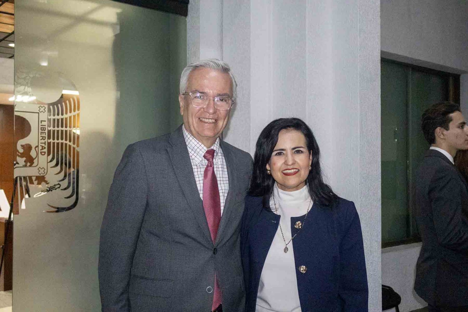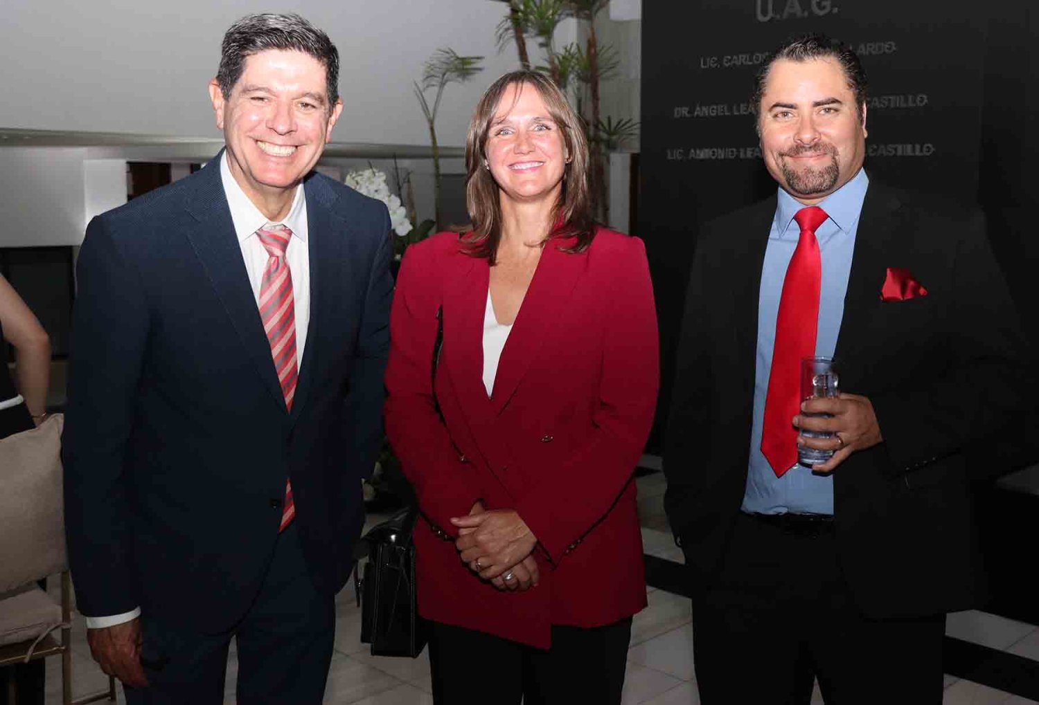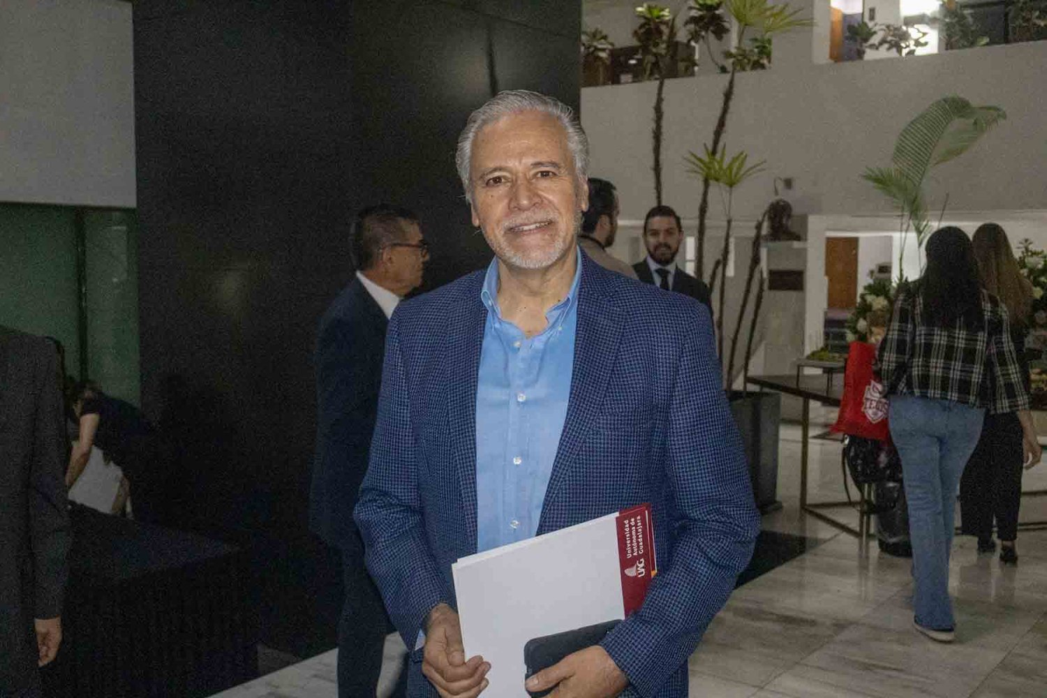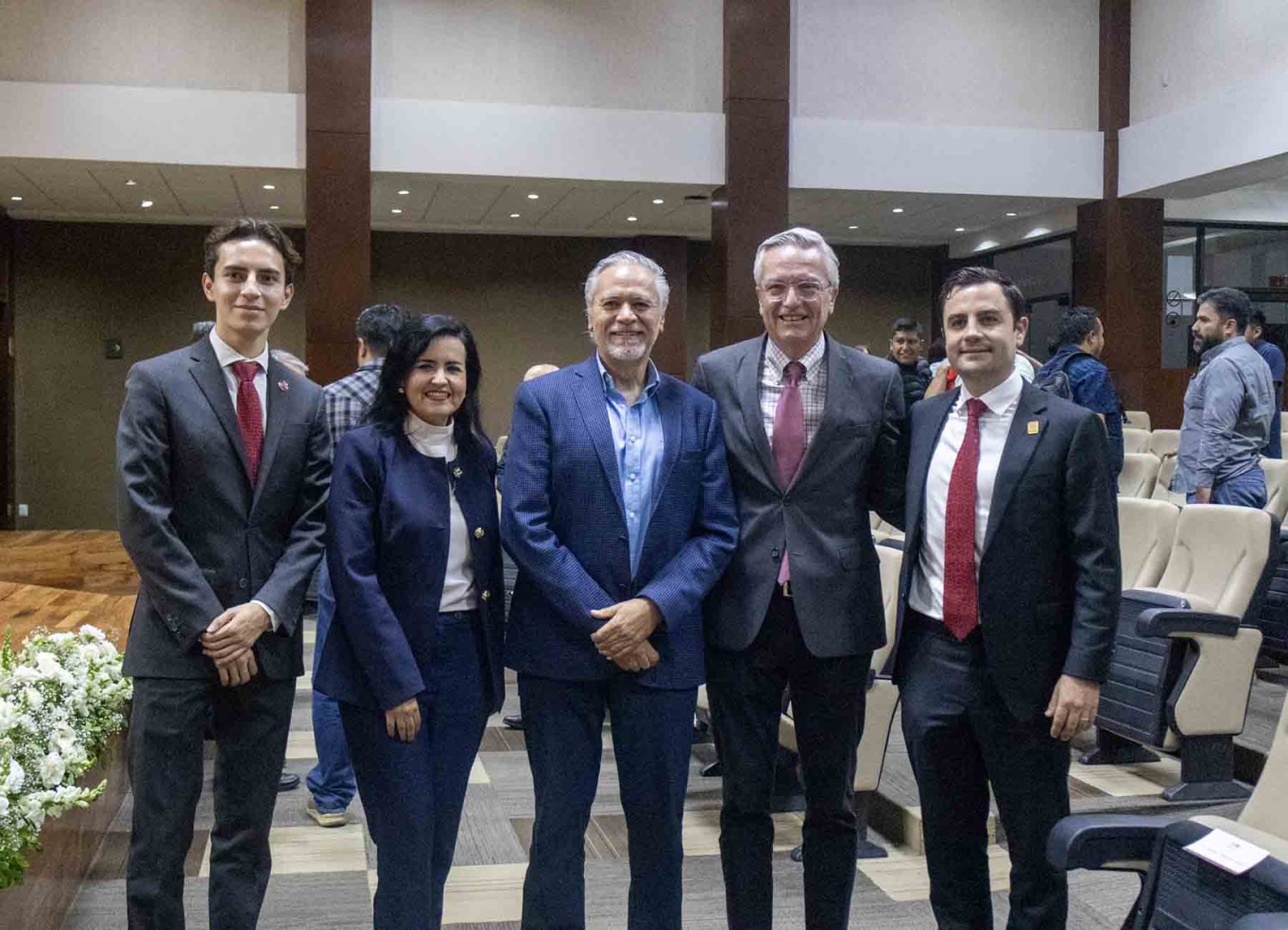 El Dr. Alfonso Petersen Fara, Vicerrector Académico y de Ciencias de la Salud, y la Dra. Karina Aguilar Moreno, Decano del Centro Formación, Desarrollo y Excelencia Directiva, hicieron entrega de un reconocimiento al conferencista, como muestra de gratitud por su participación durante la ceremonia, que concluyó con una ronda de aplausos y toma de fotografías.